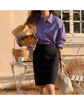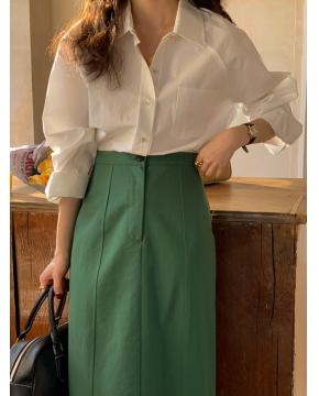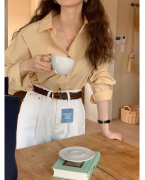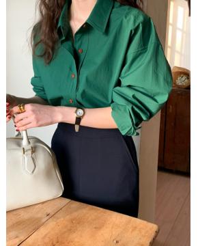 韩系 糖果色洋气百搭 纯色气质翻领单排扣长袖衬衫