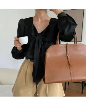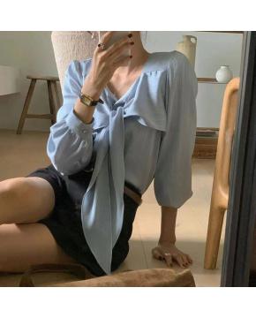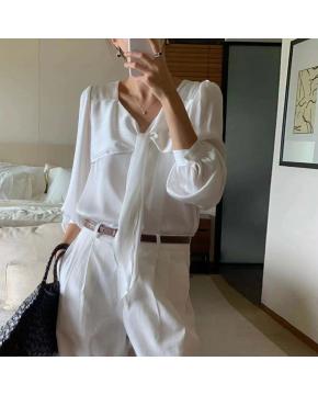 INS博主款 法式气质优雅百搭系带飘领衬衫女上衣