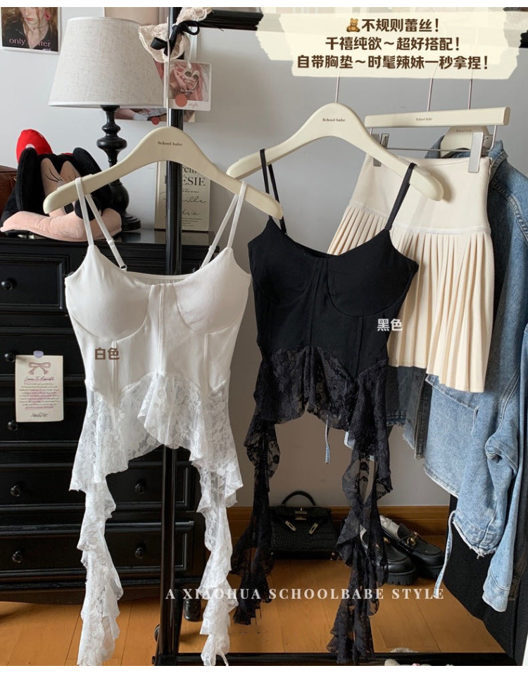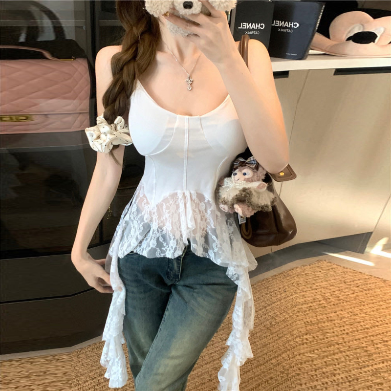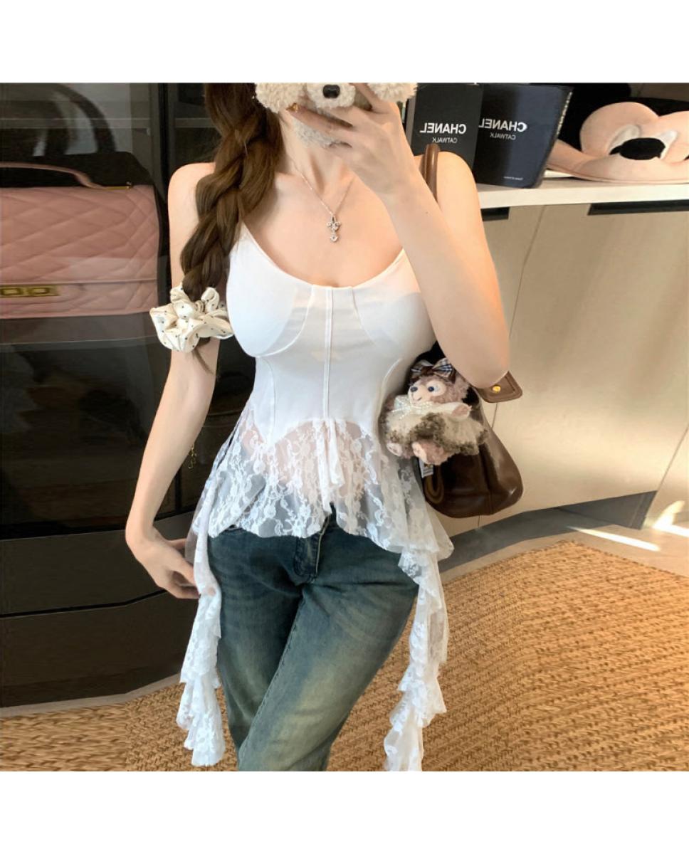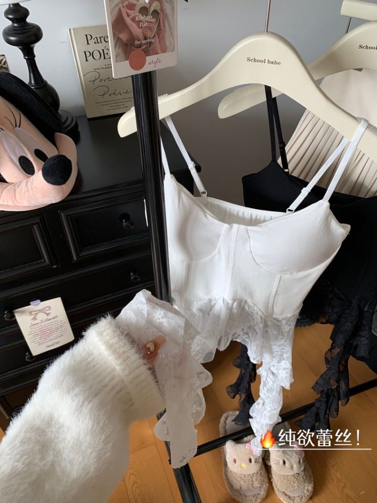 纯欲风蕾丝吊带小背心女夏季修身内搭打底衫辣妹无袖上衣
