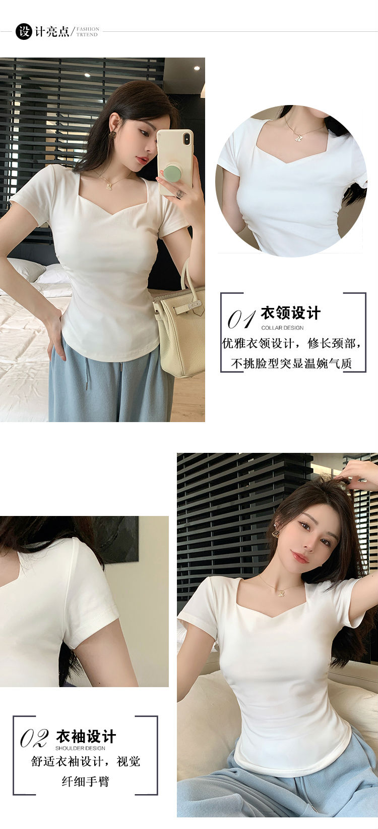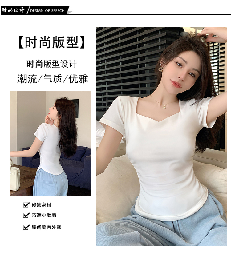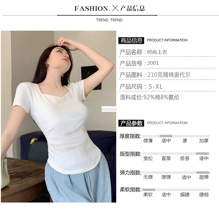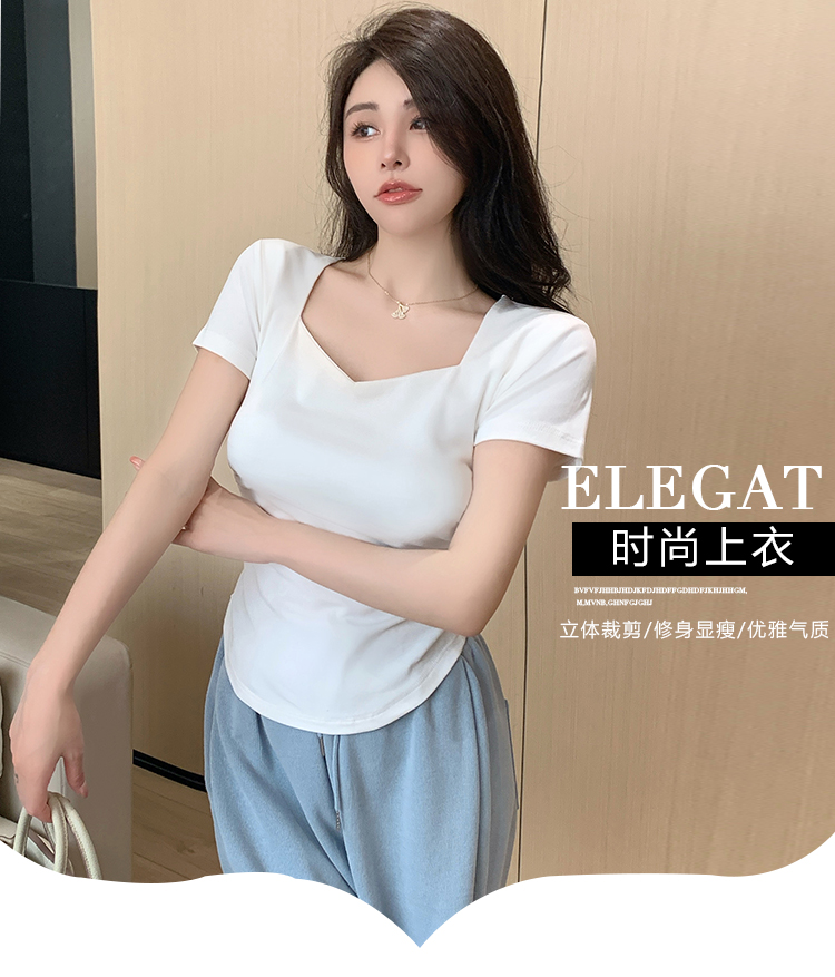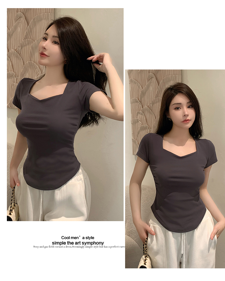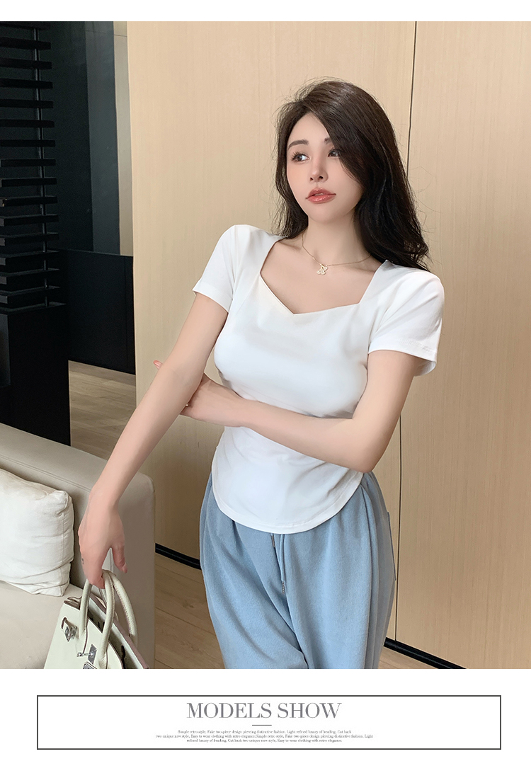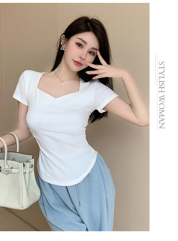 春夏季韩版气质海鸥领褶皱纯色纯棉短袖T恤辣妹纯欲上衣女