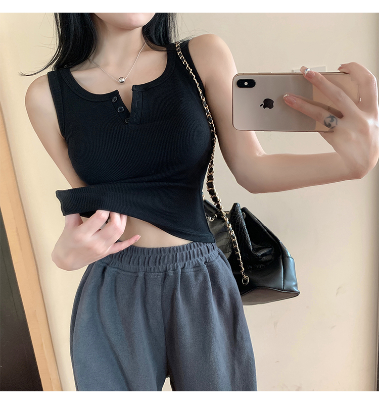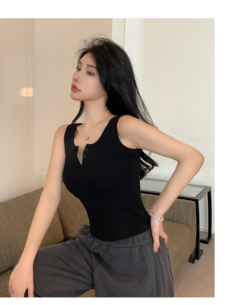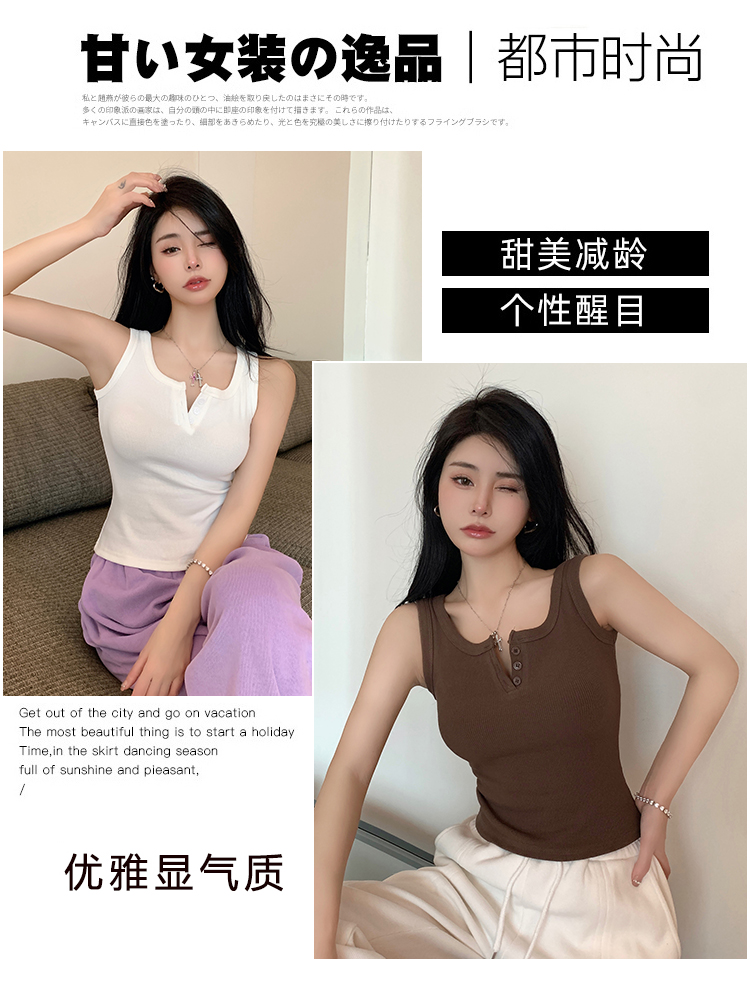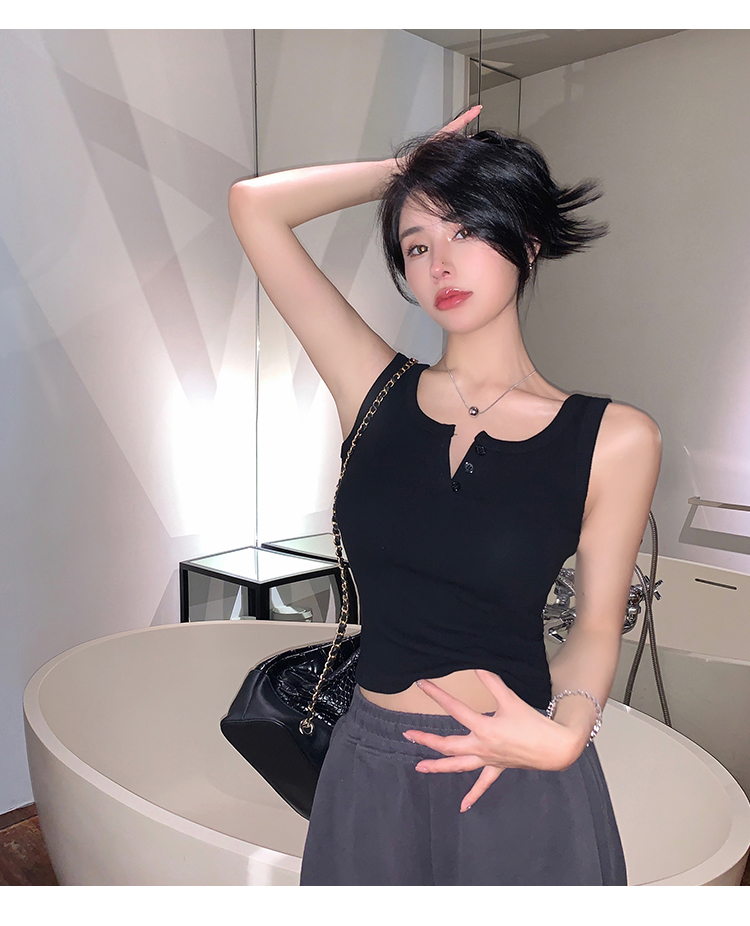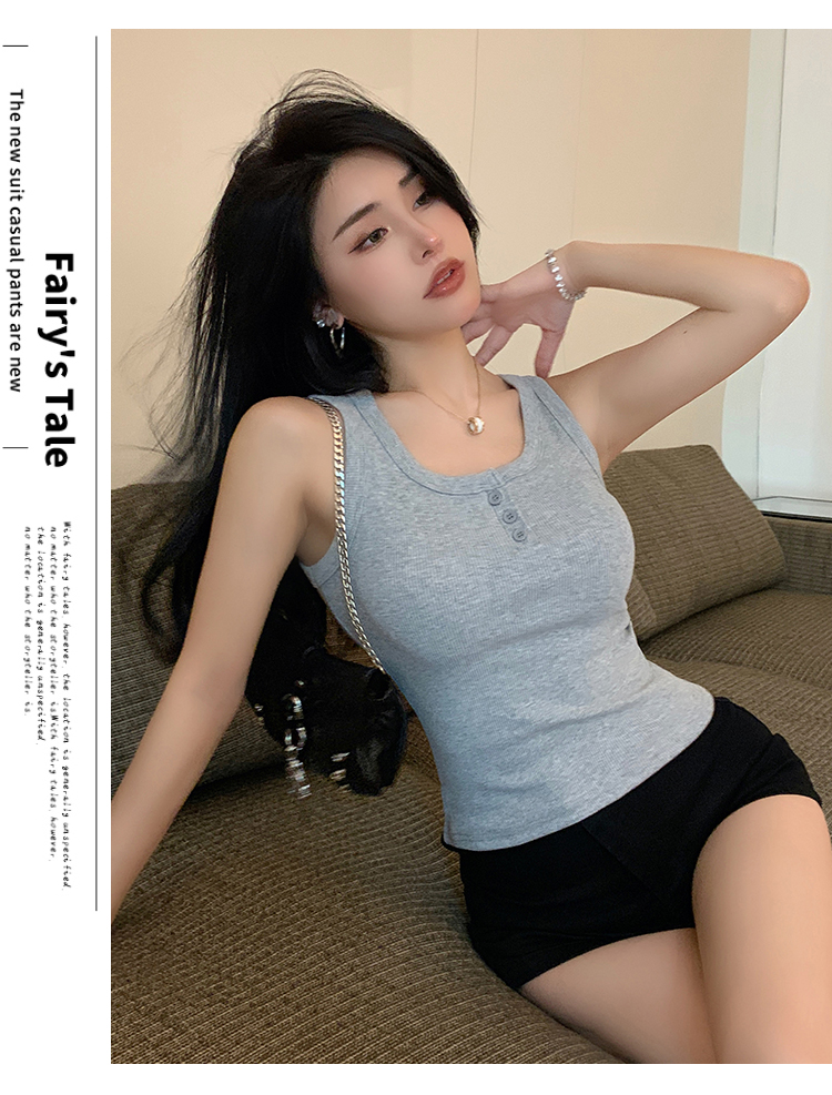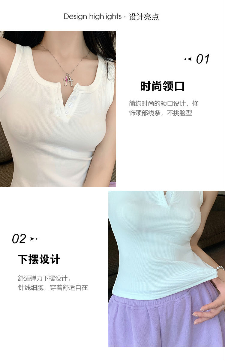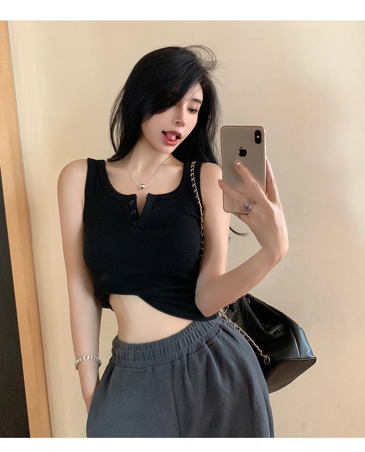 春夏季无袖小吊带辣妹设计感短款修身螺纹背心露脐打底上衣女