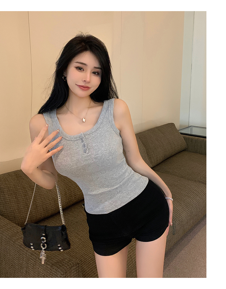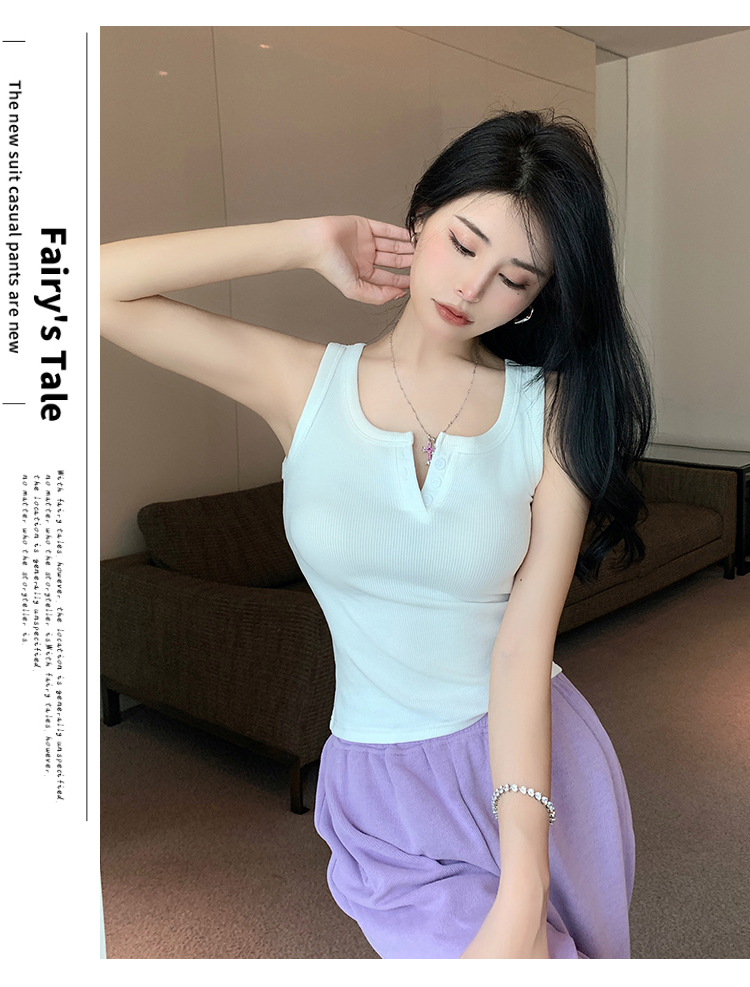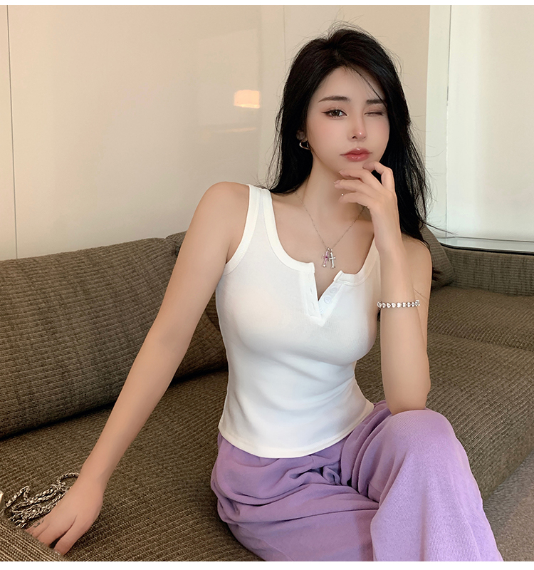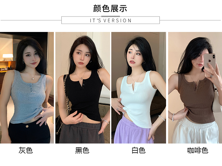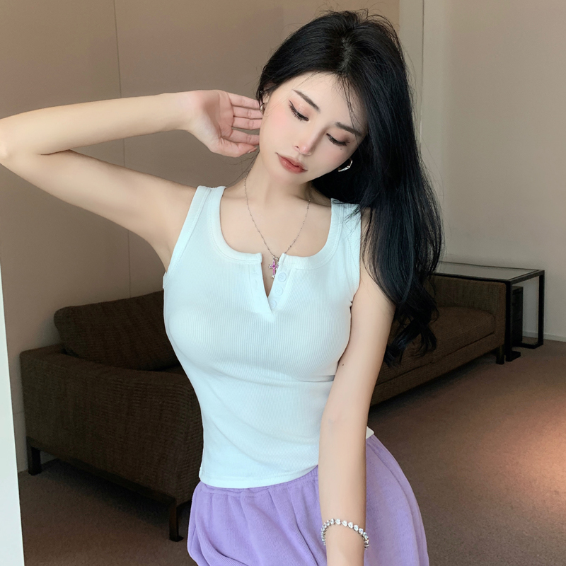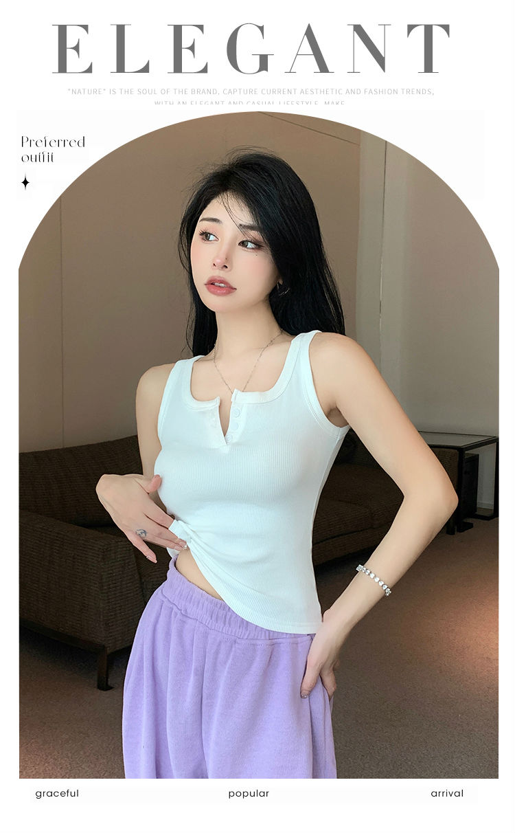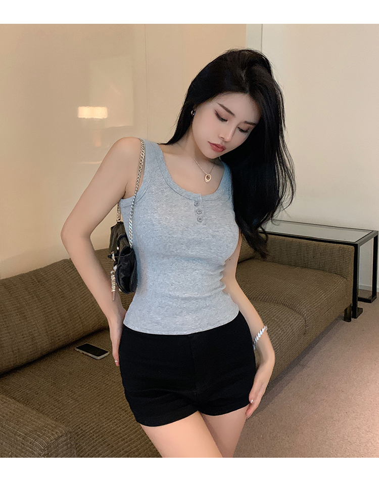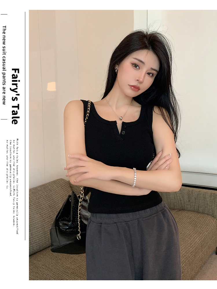 春夏季无袖小吊带辣妹设计感短款修身螺纹背心露脐打底上衣女