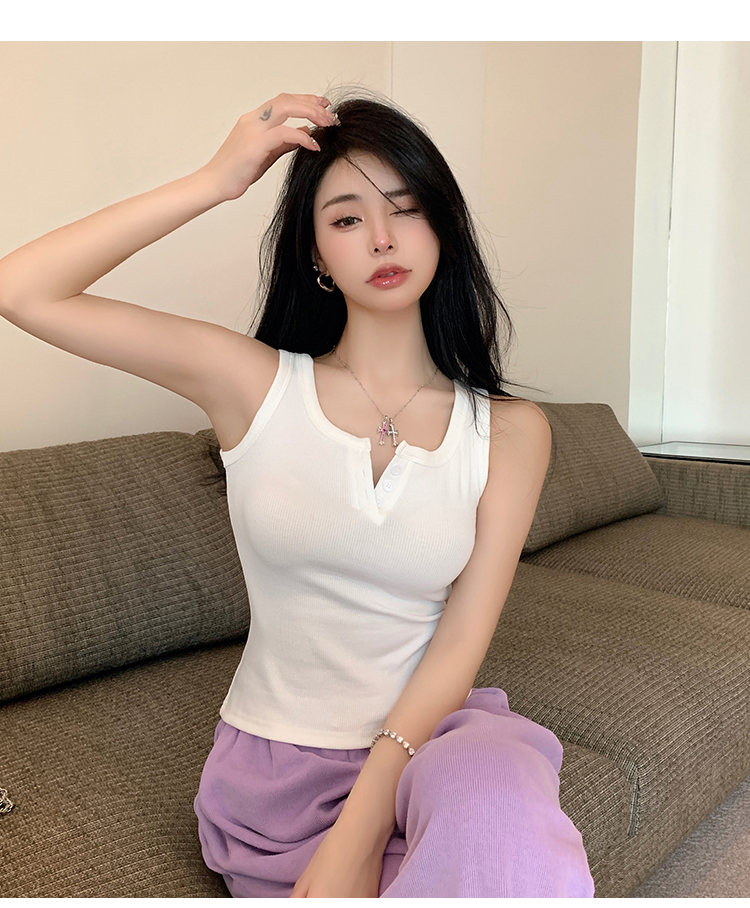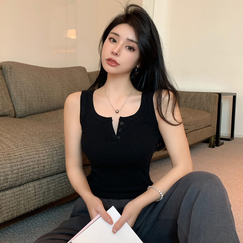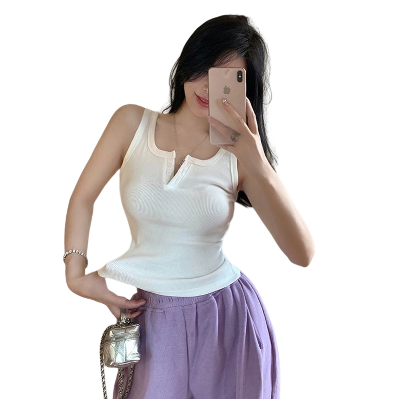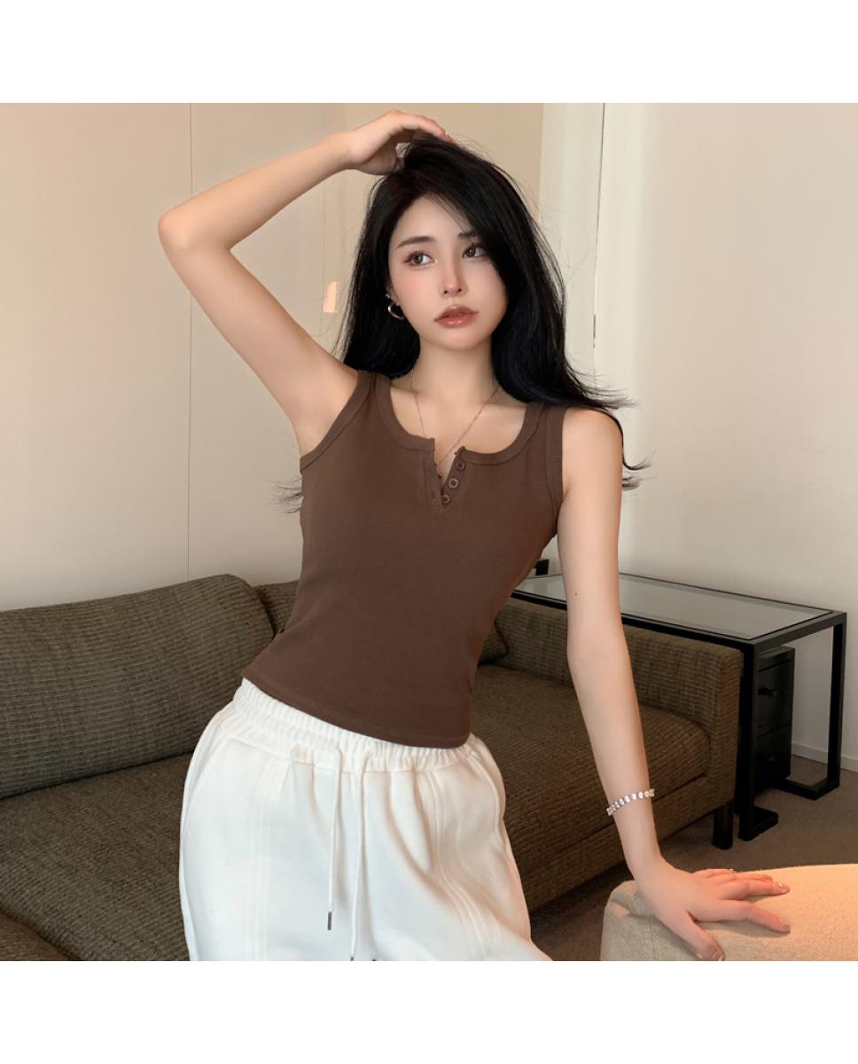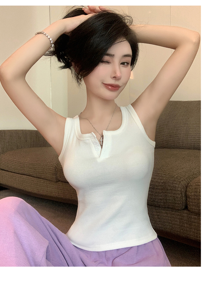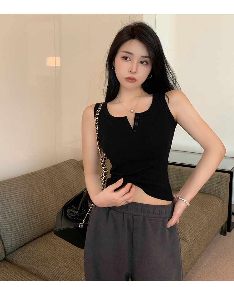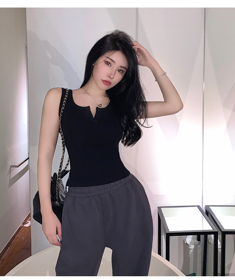 春夏季无袖小吊带辣妹设计感短款修身螺纹背心露脐打底上衣女