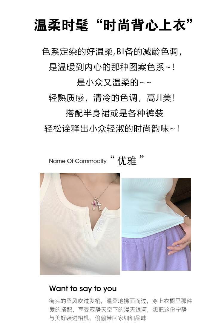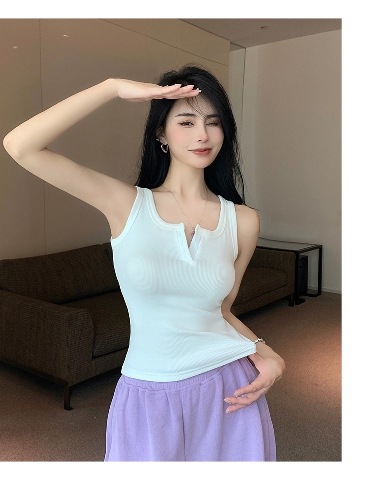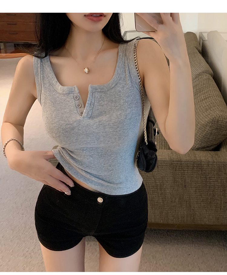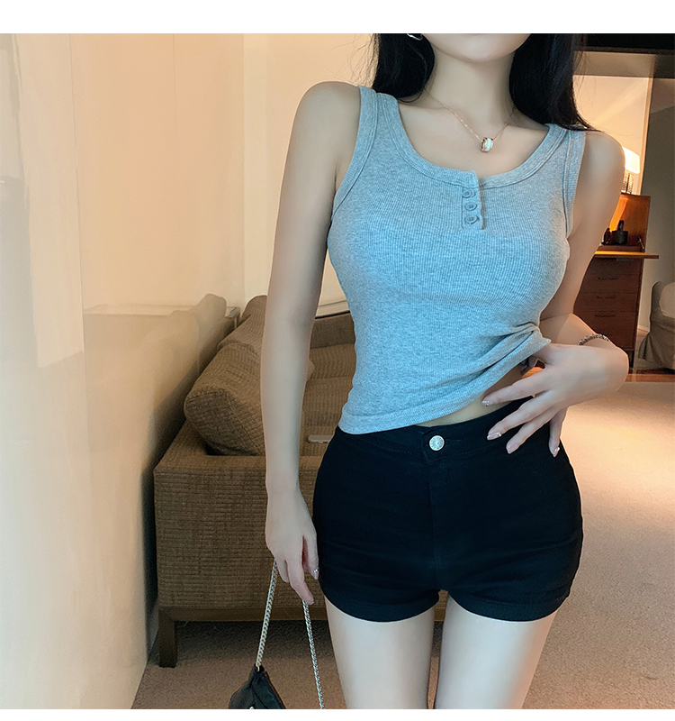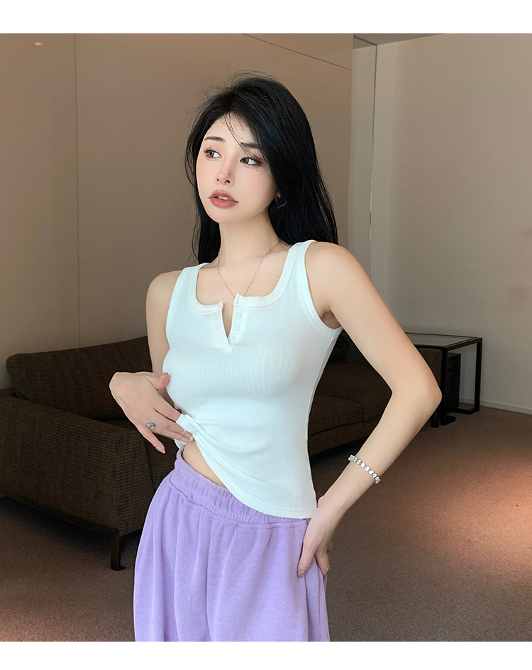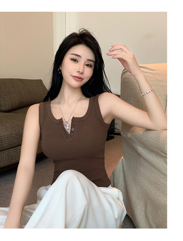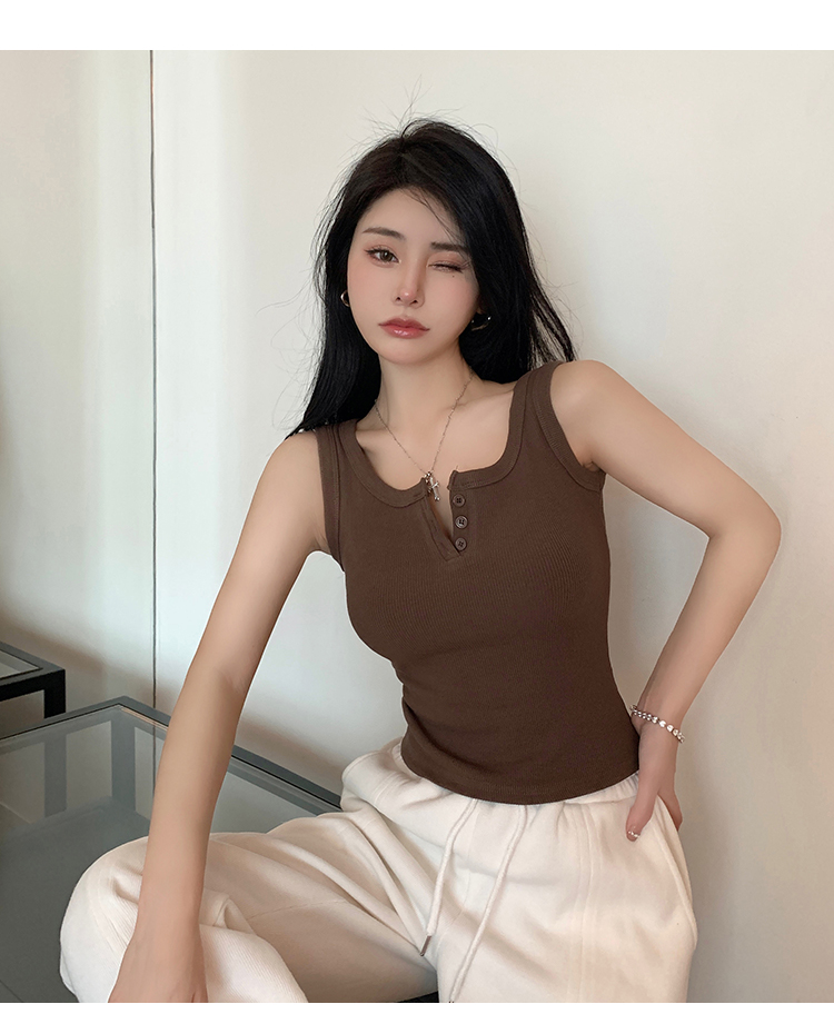春夏季无袖小吊带辣妹设计感短款修身螺纹背心露脐打底上衣女