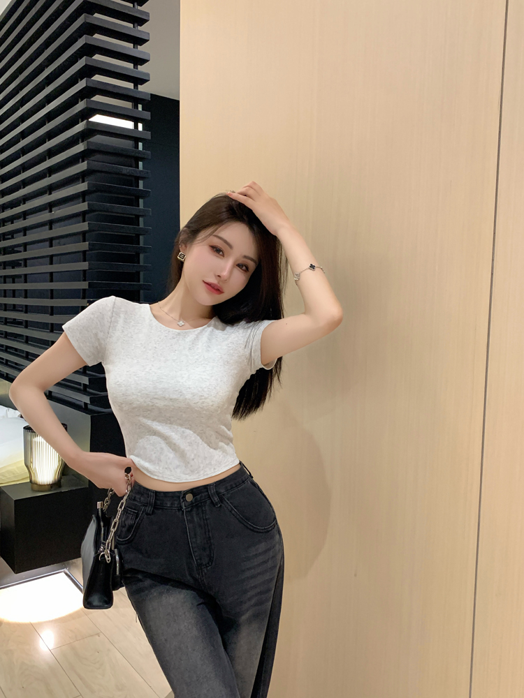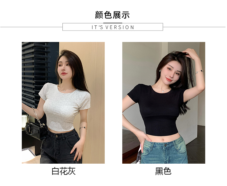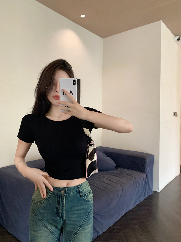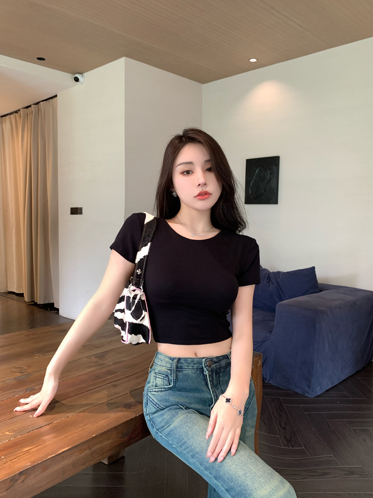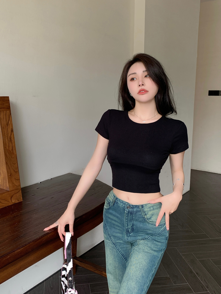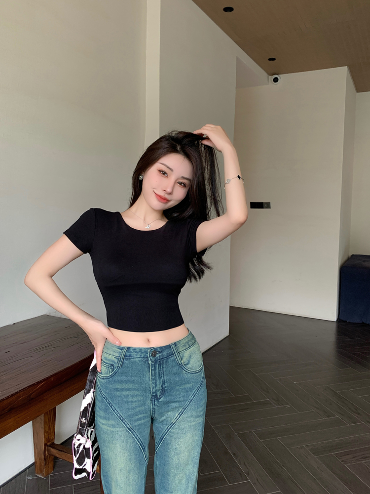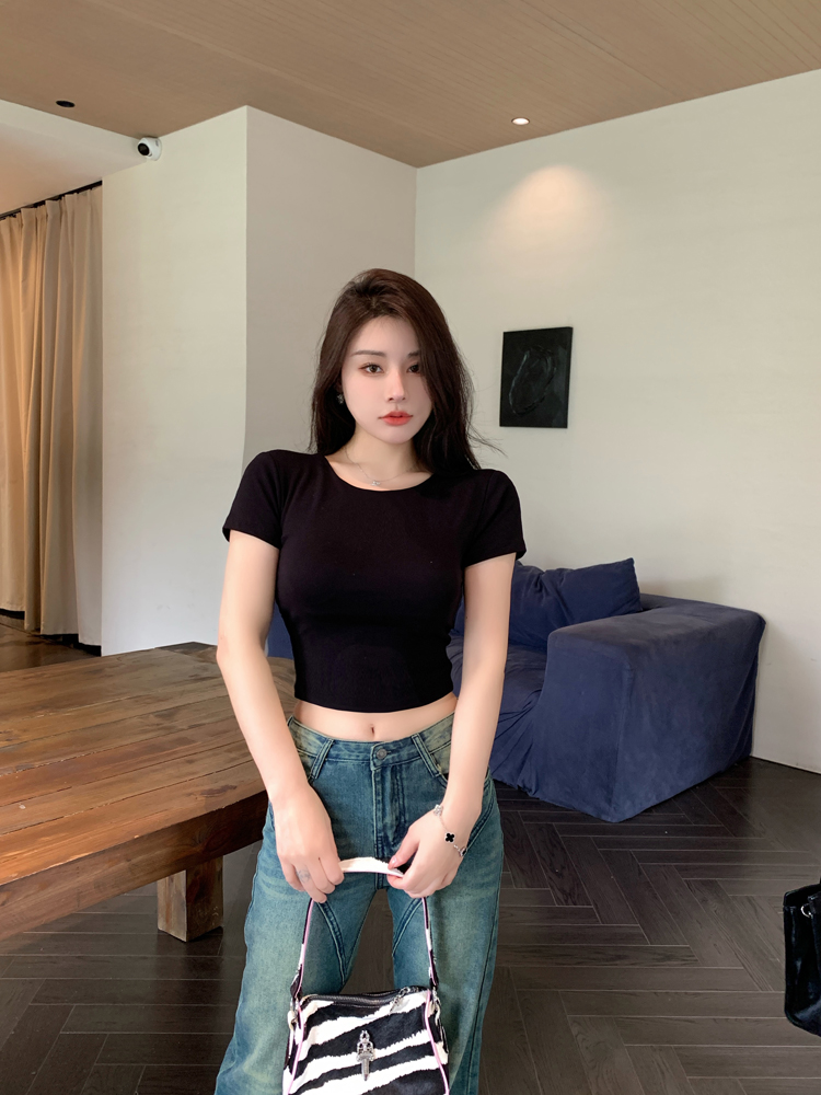 纯欲风夏季辣妹镂空美背正肩短袖T恤女小众设计显瘦短款上衣