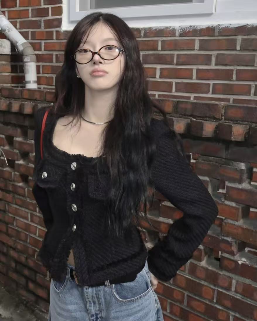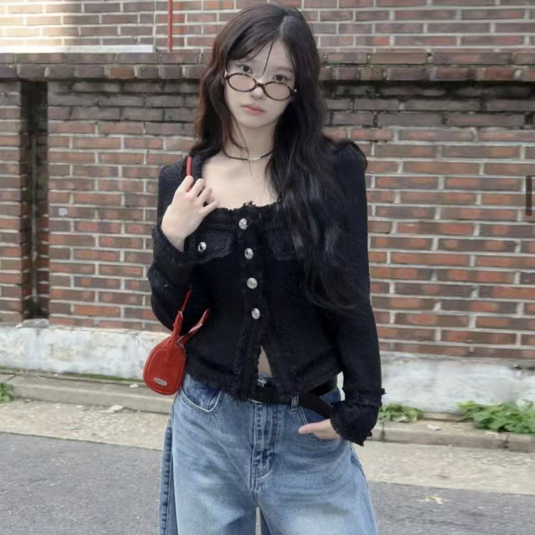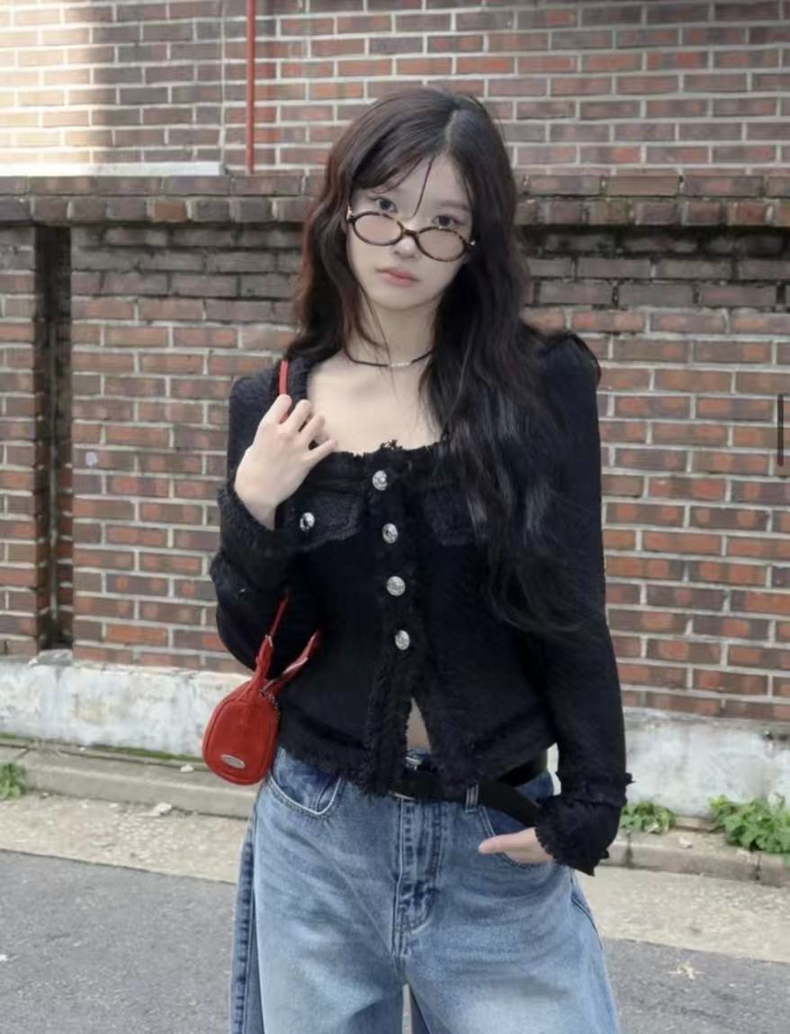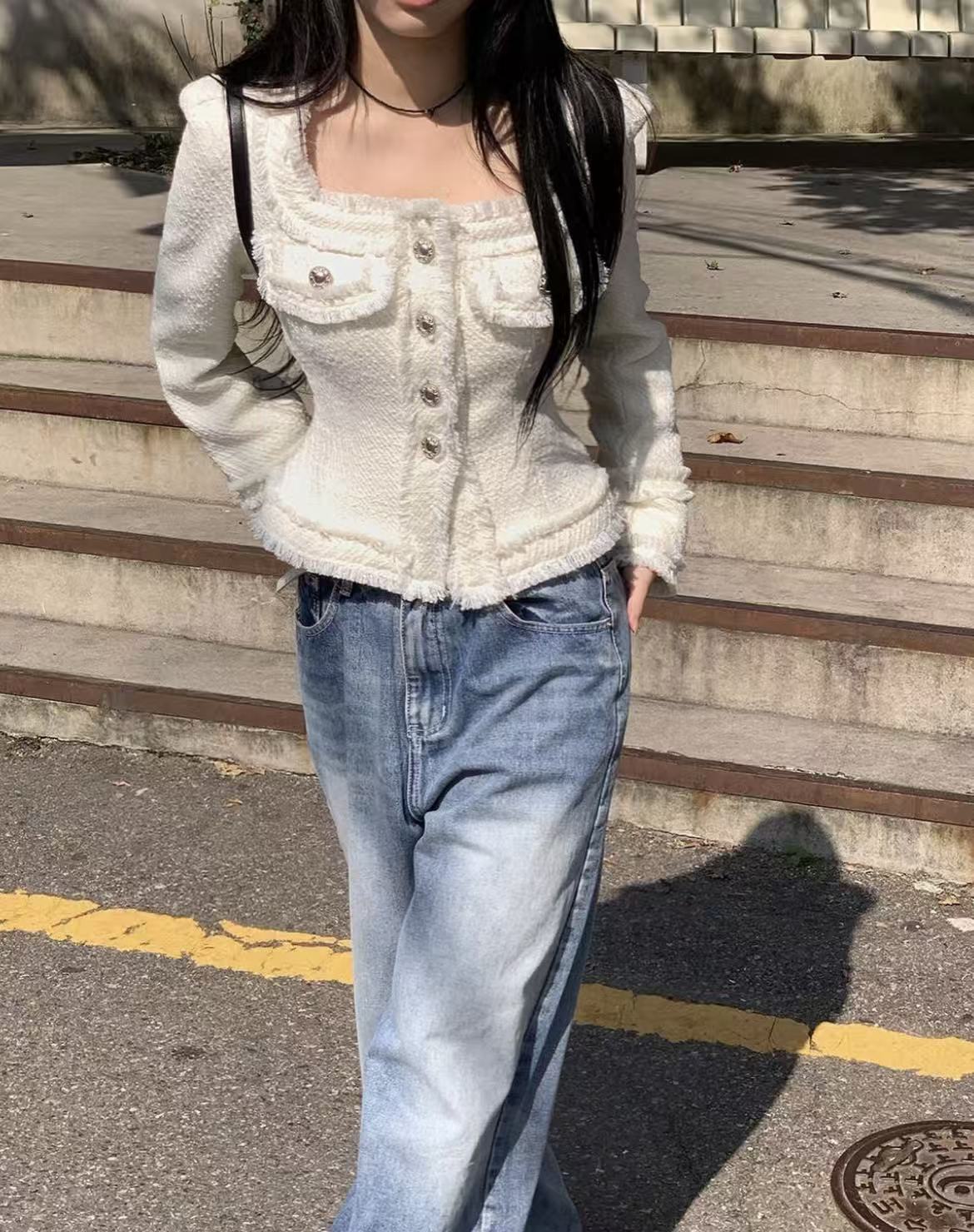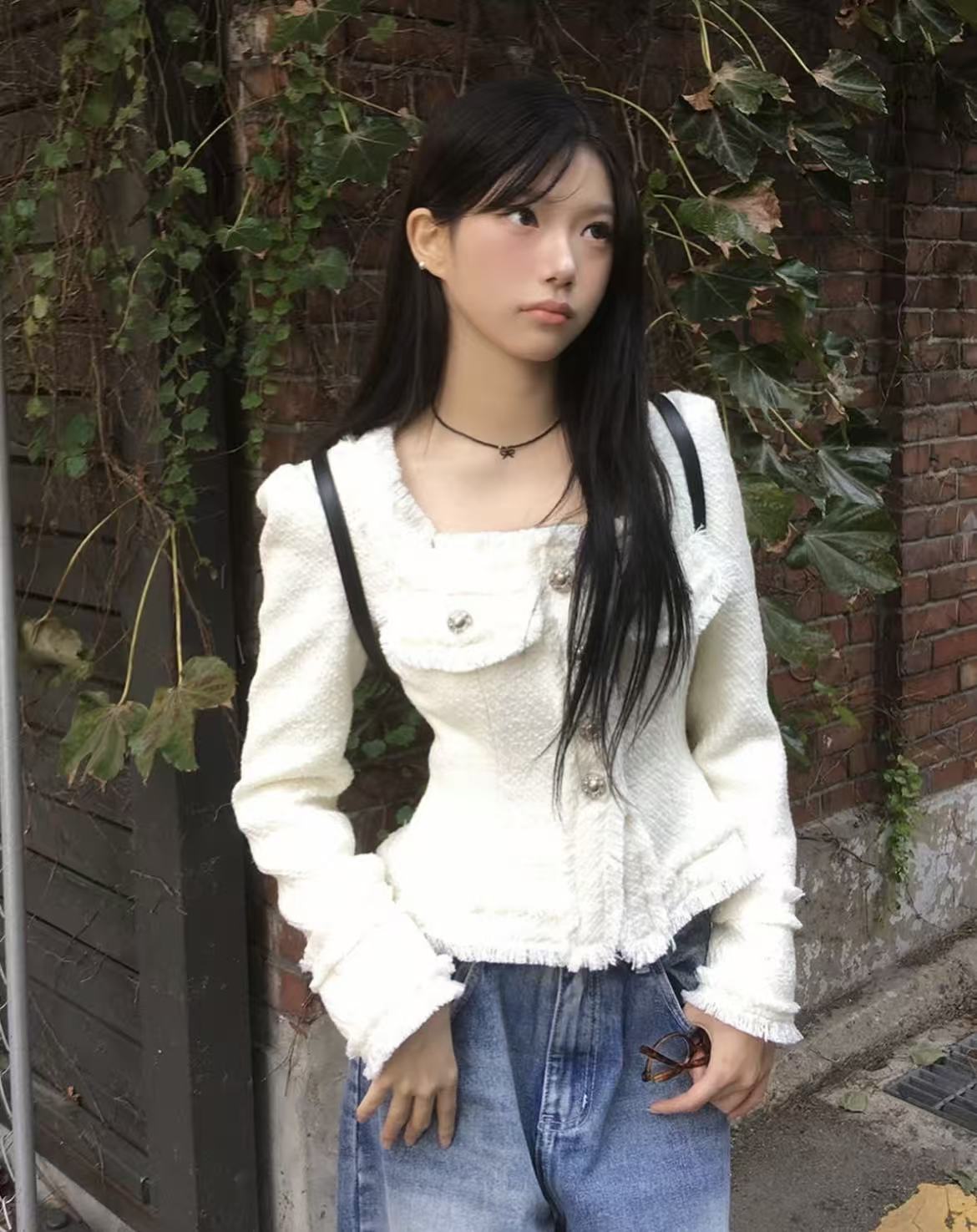 韩国chic法式气质优雅单排扣粗花呢小香风短外套