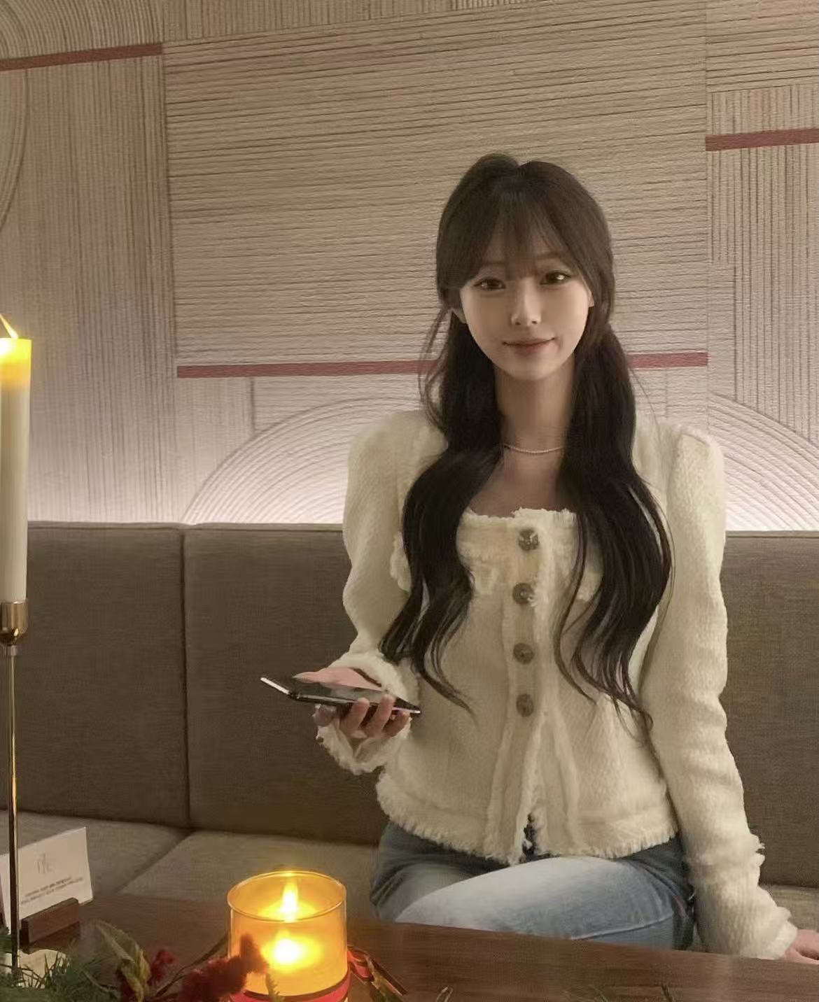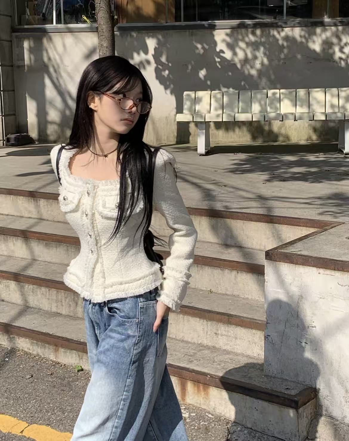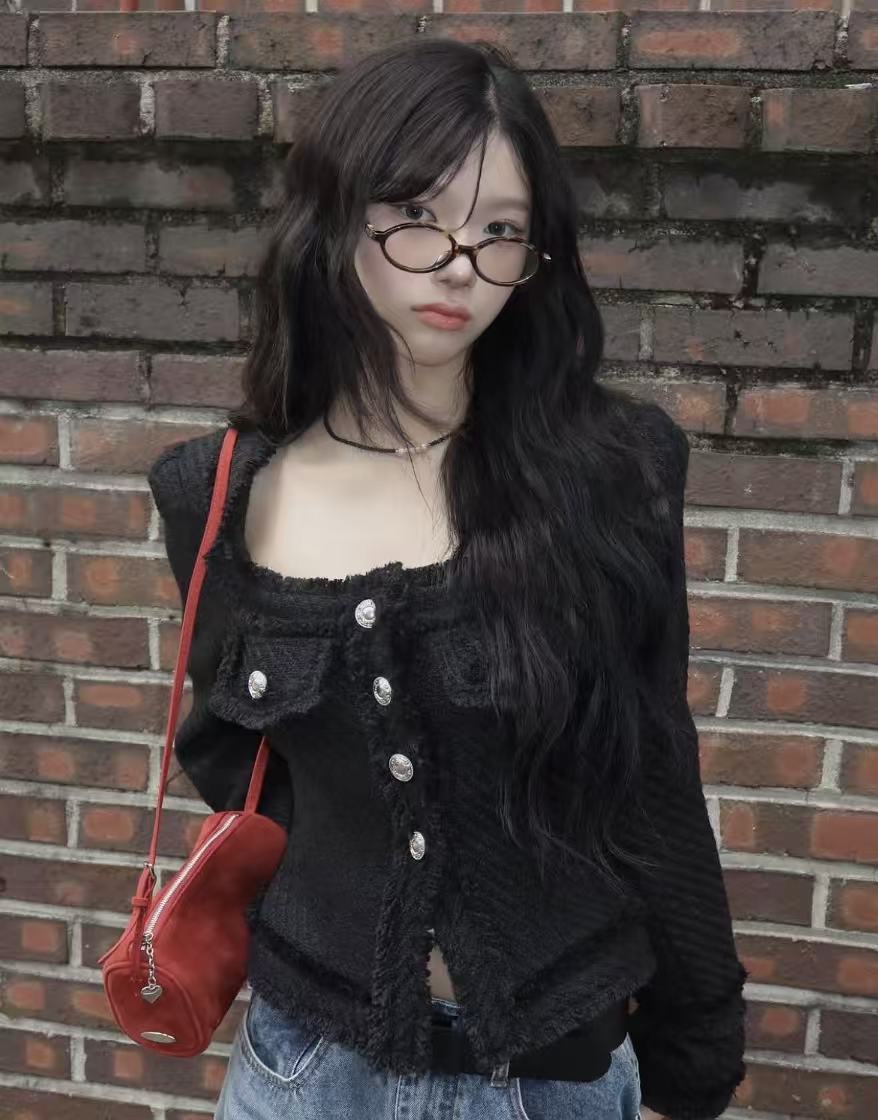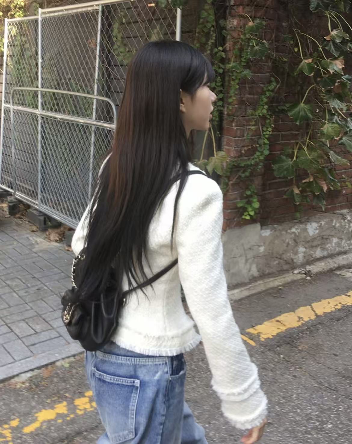 韩国chic法式气质优雅单排扣粗花呢小香风短外套