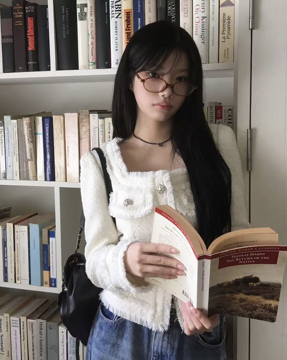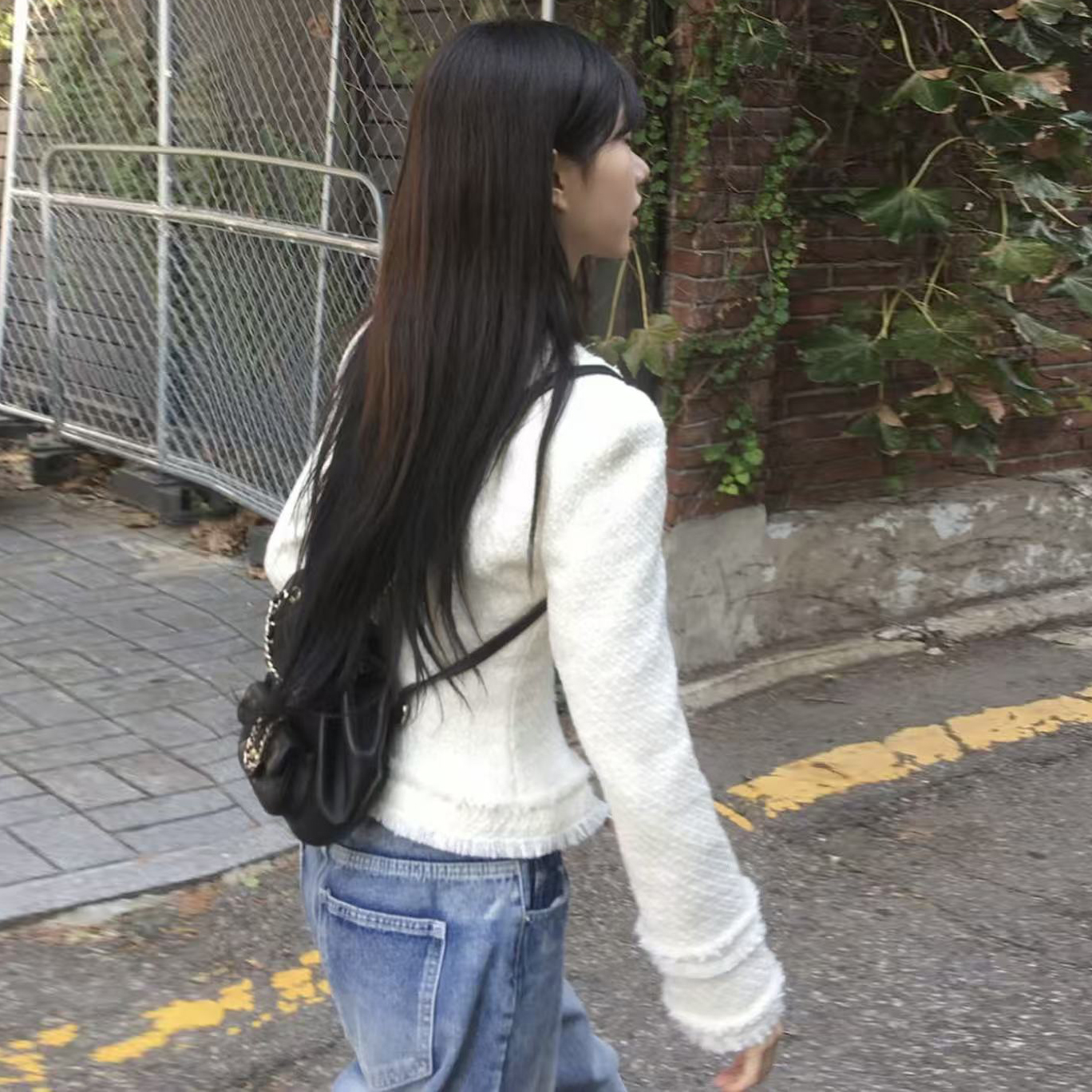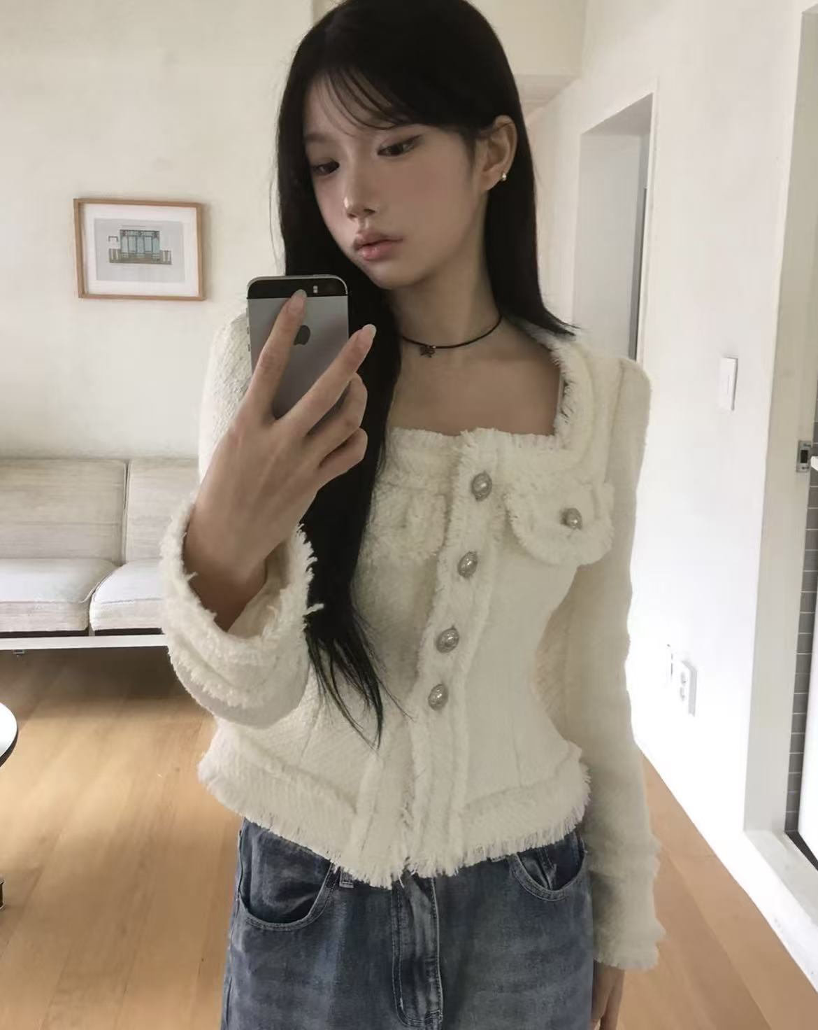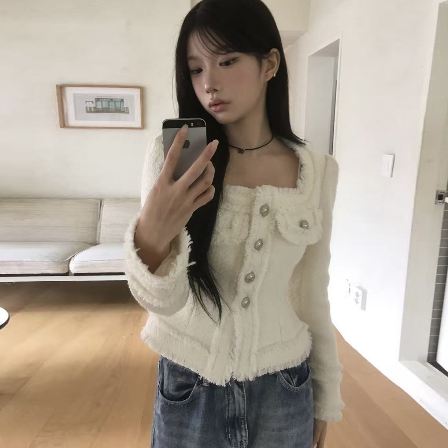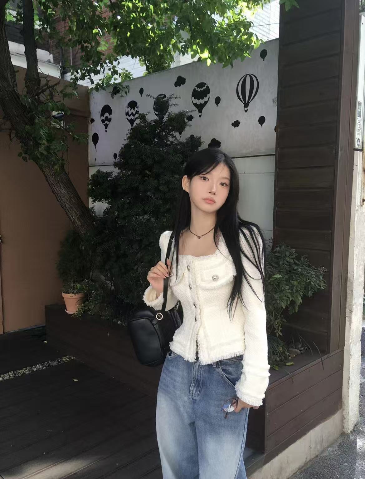 韩国chic法式气质优雅单排扣粗花呢小香风短外套