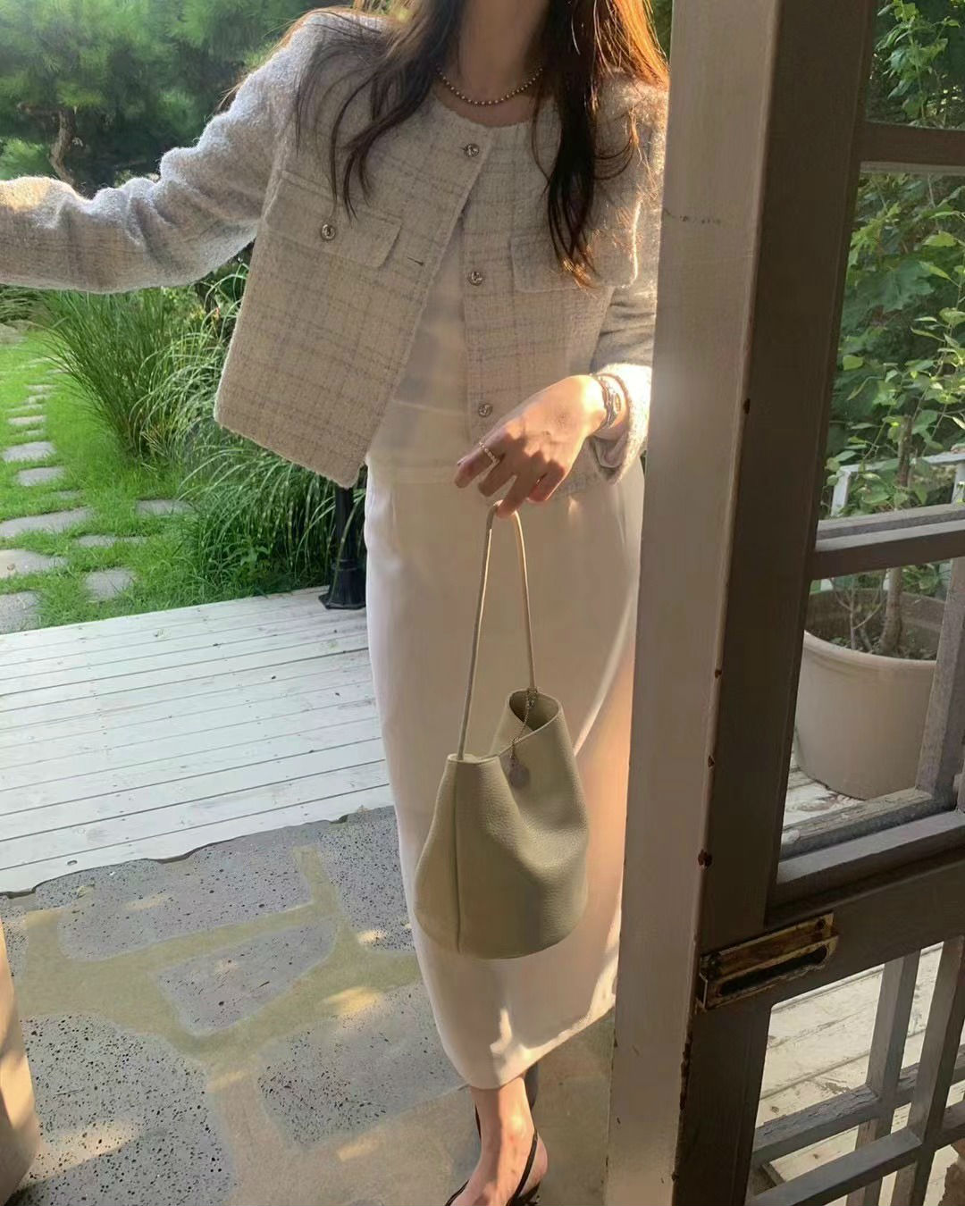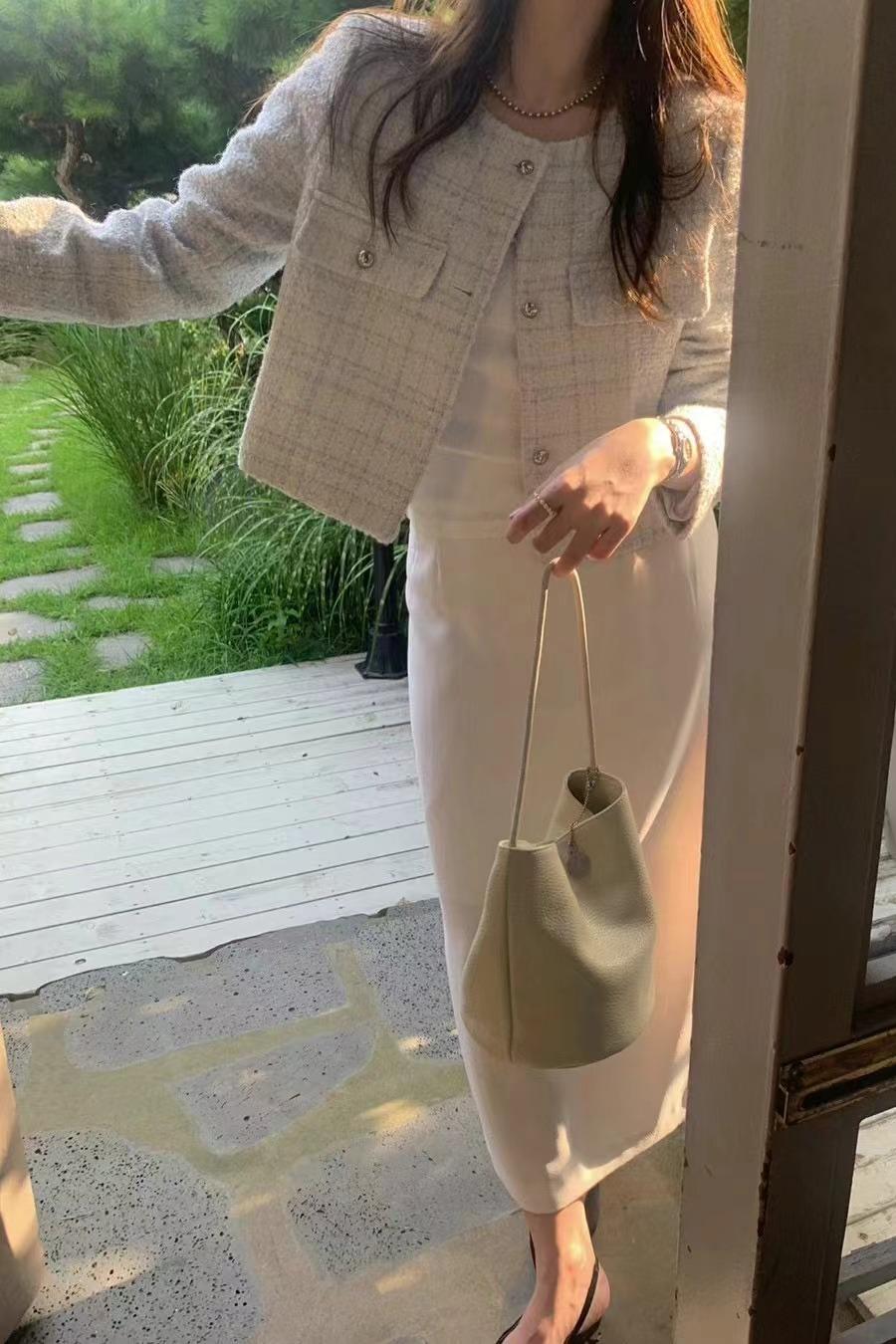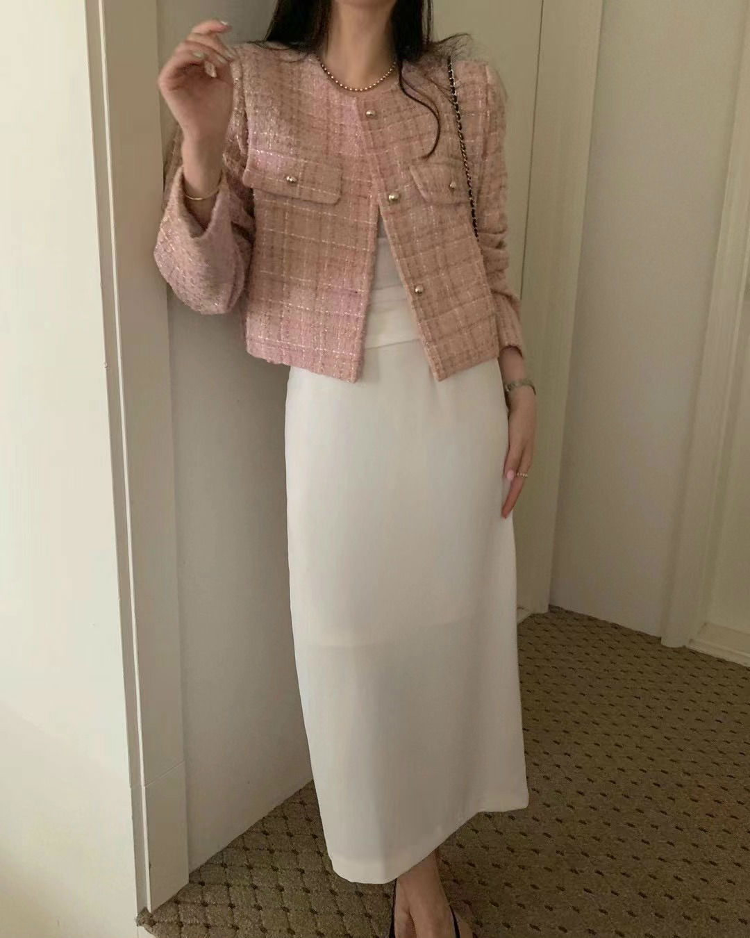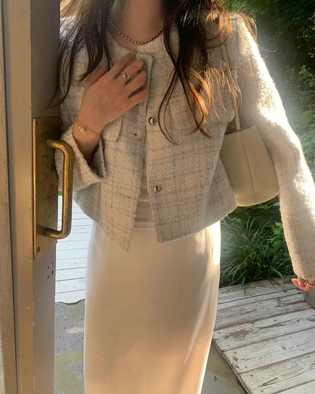 韩国chic法式气质优雅单排扣粗花呢小香风短外套