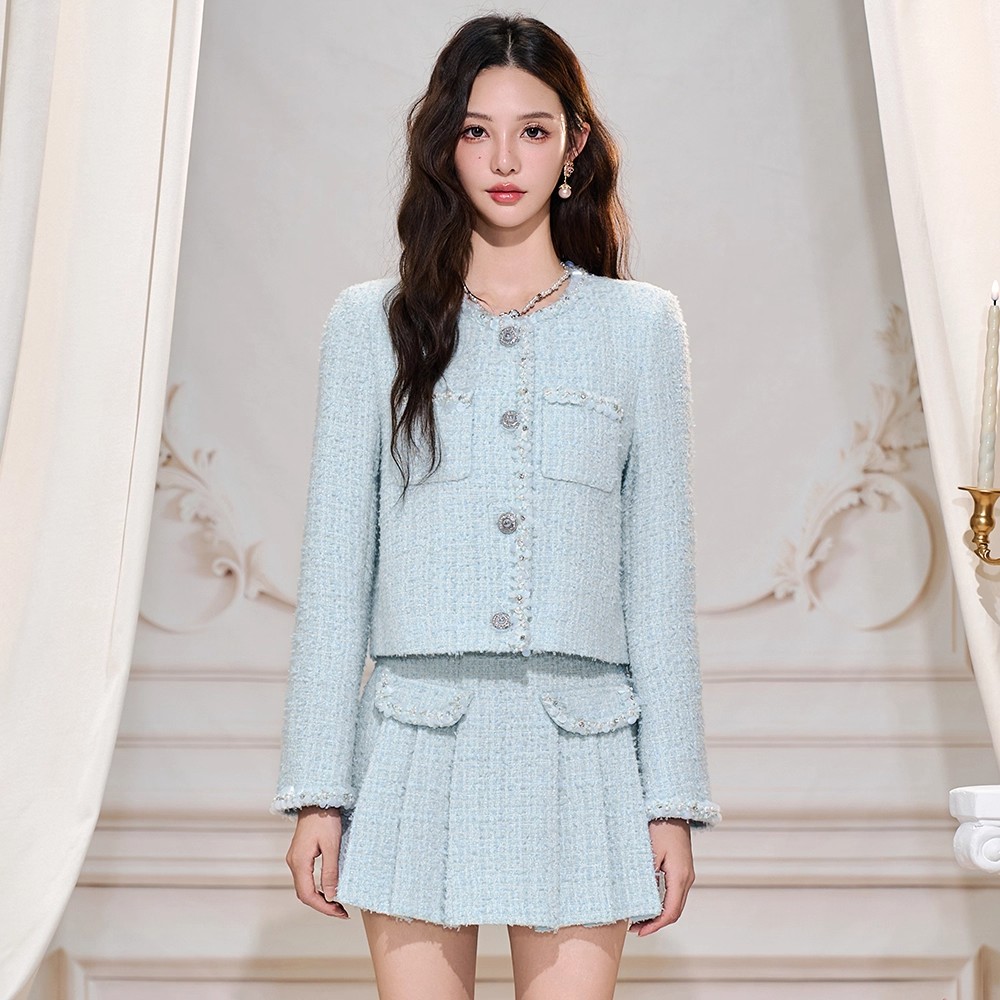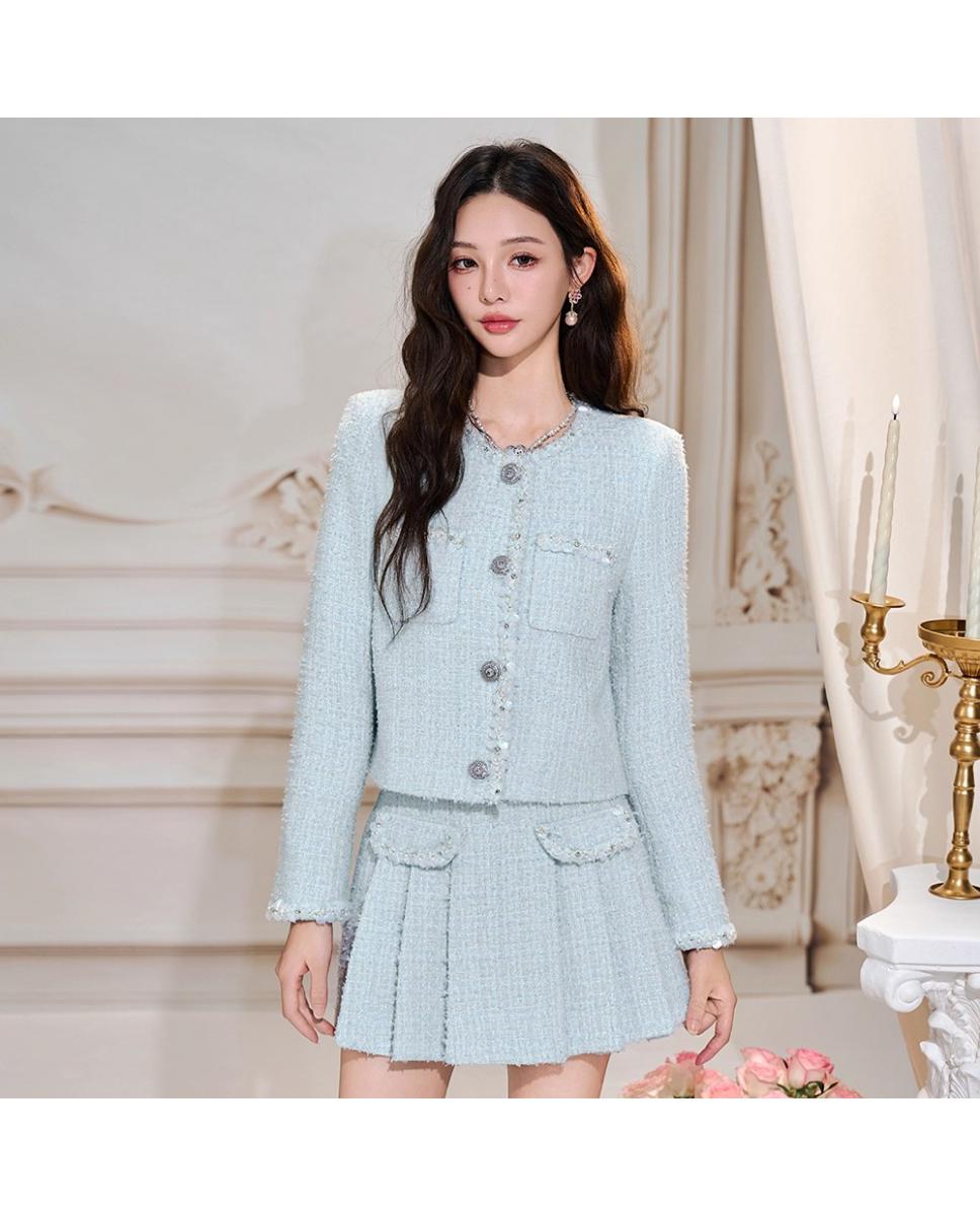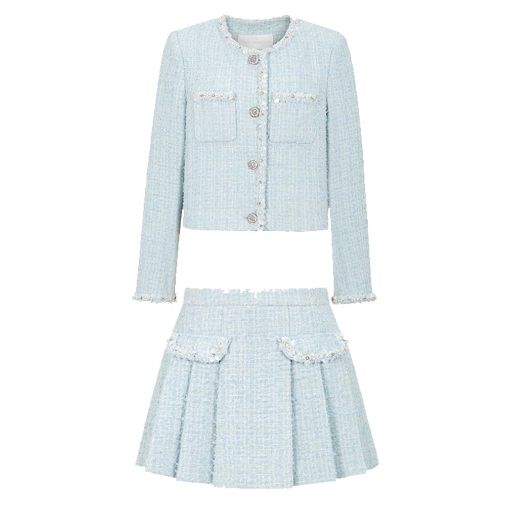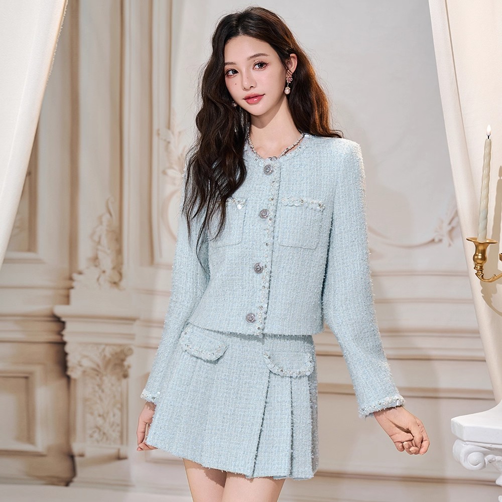 小香风套装粗花呢小香上衣百褶半裙
