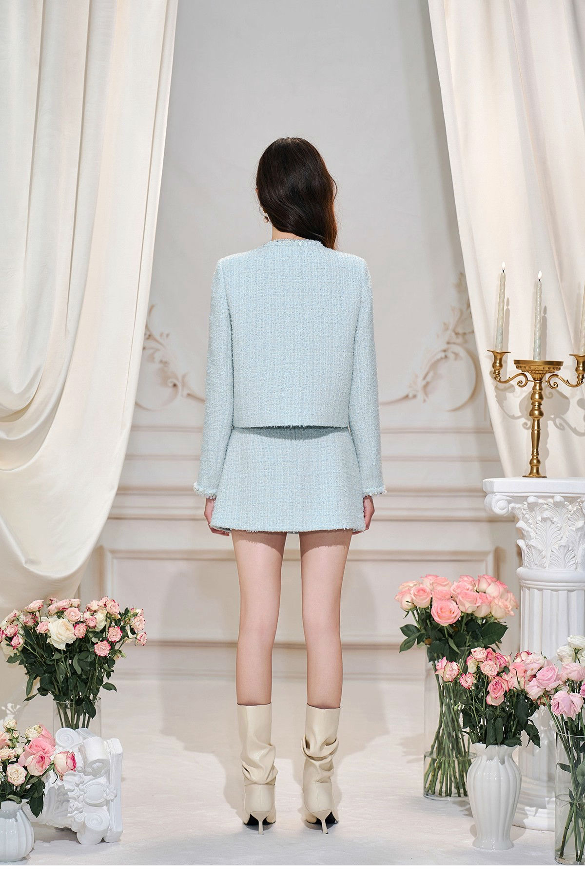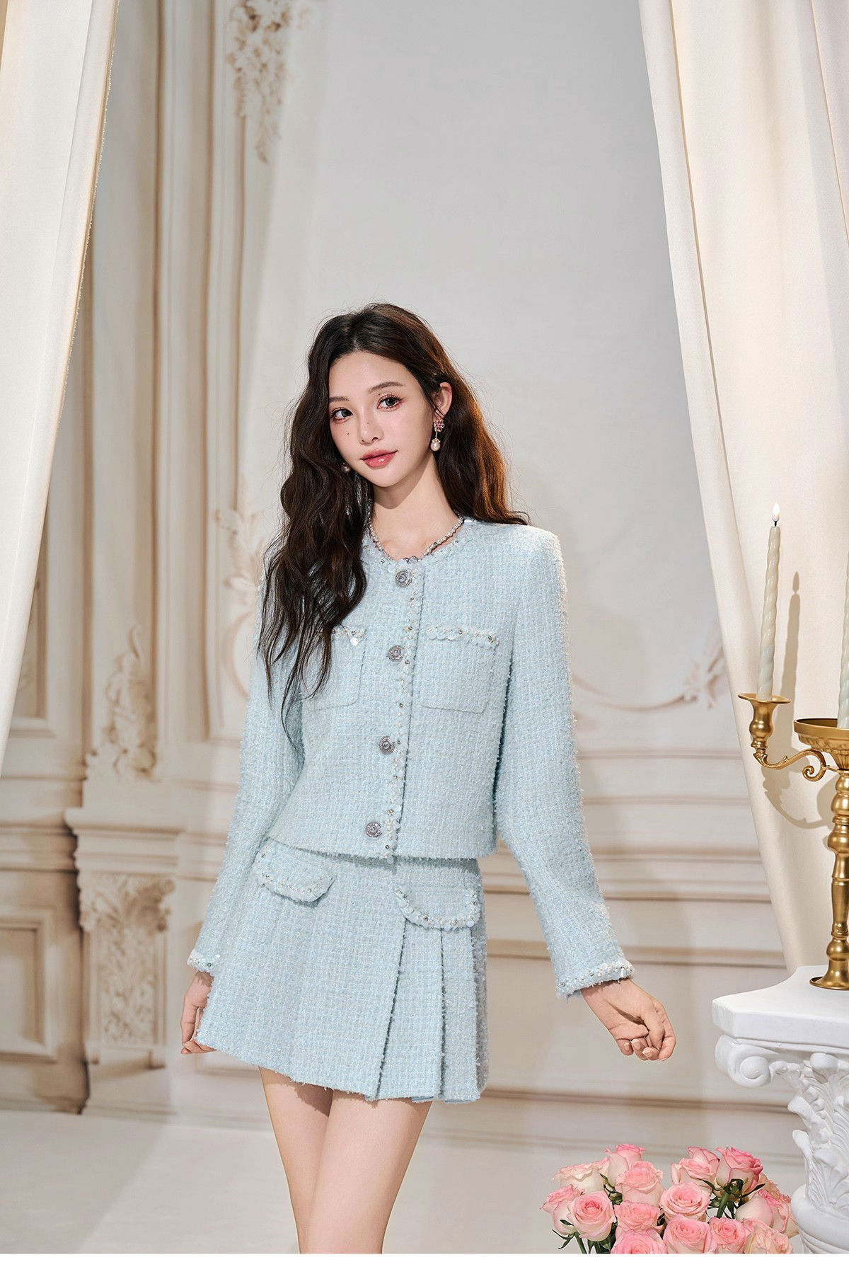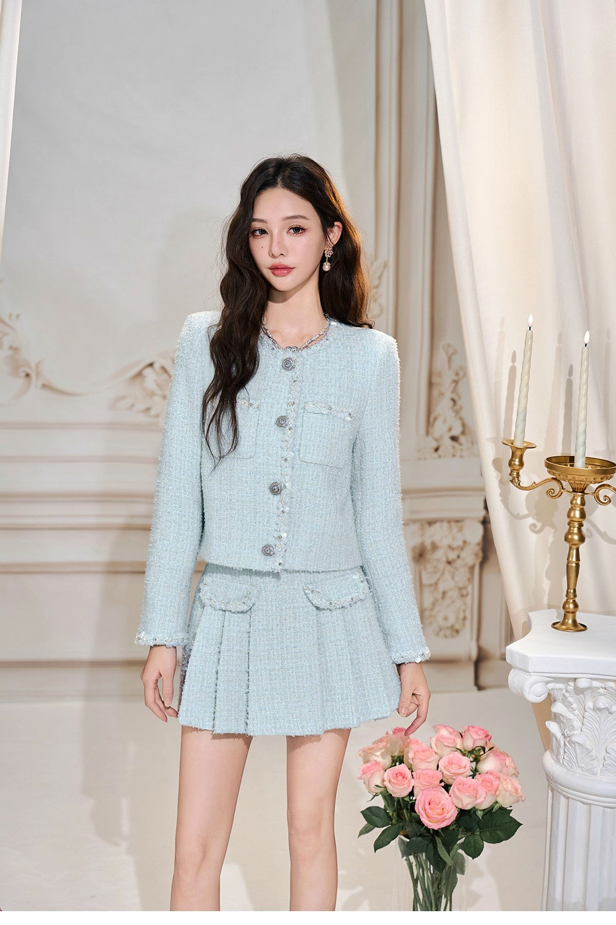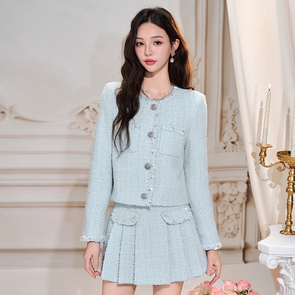 小香风套装粗花呢小香上衣百褶半裙