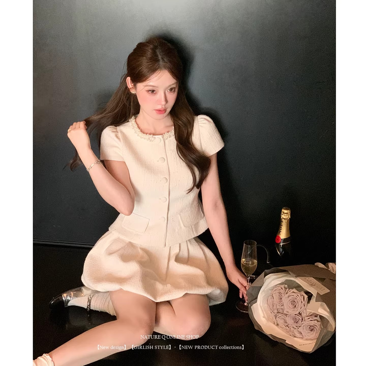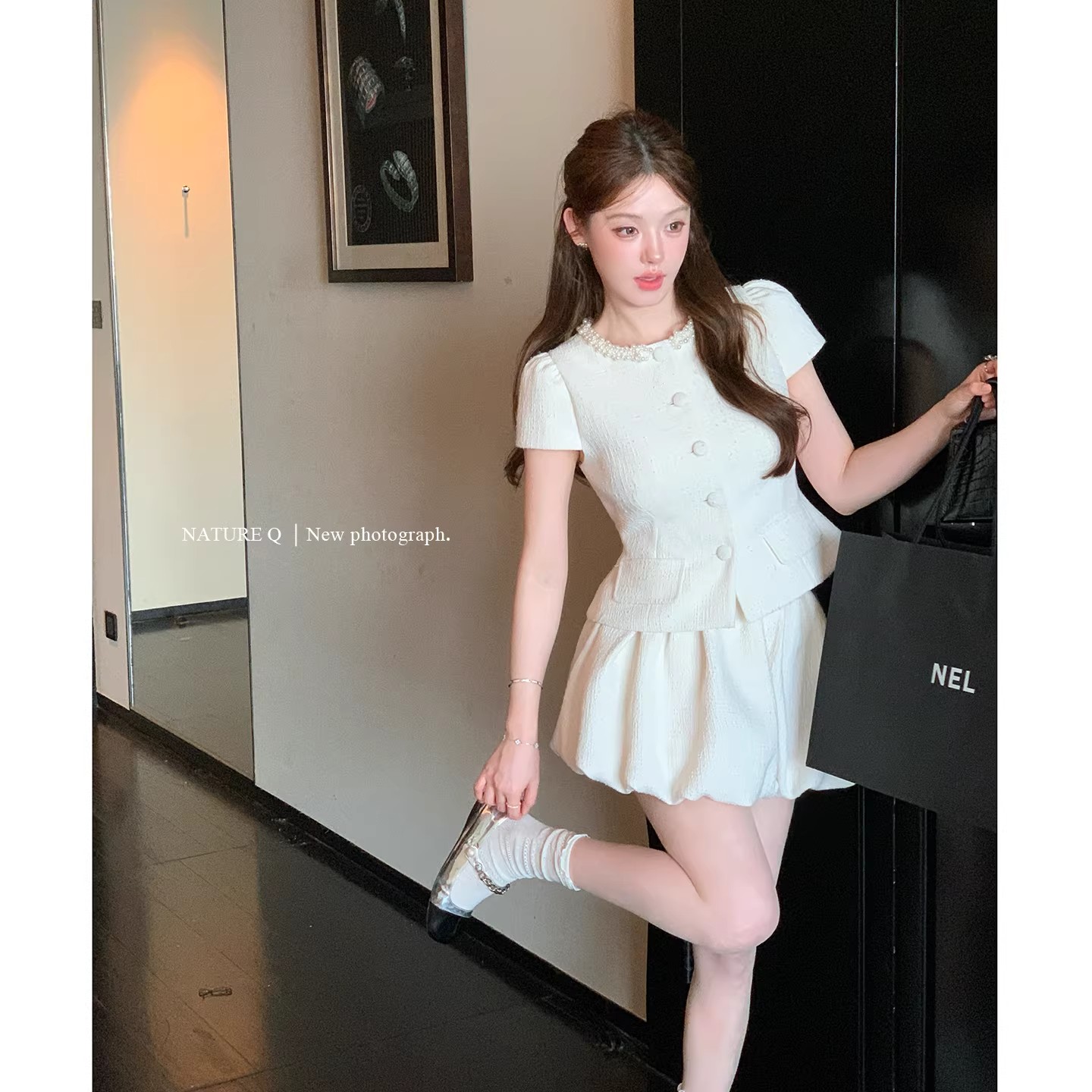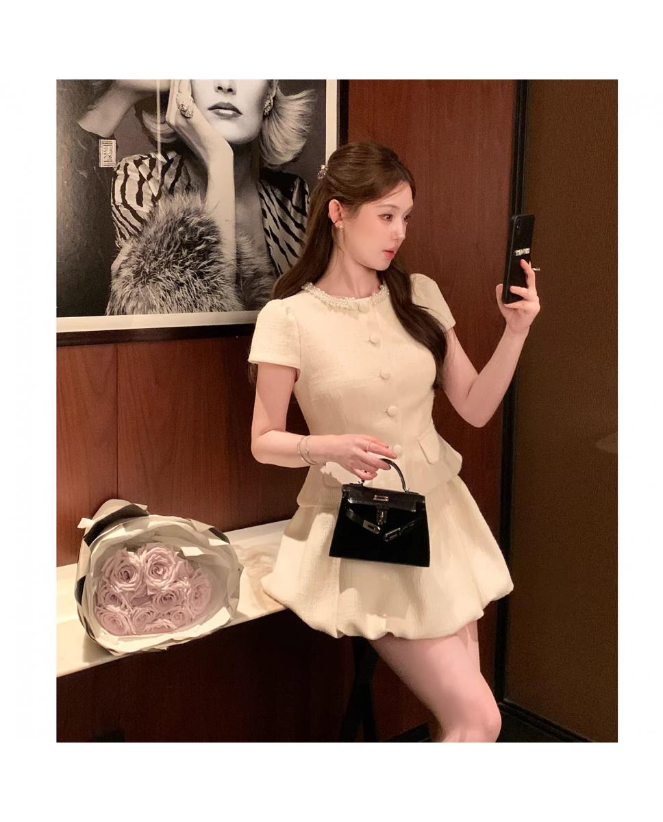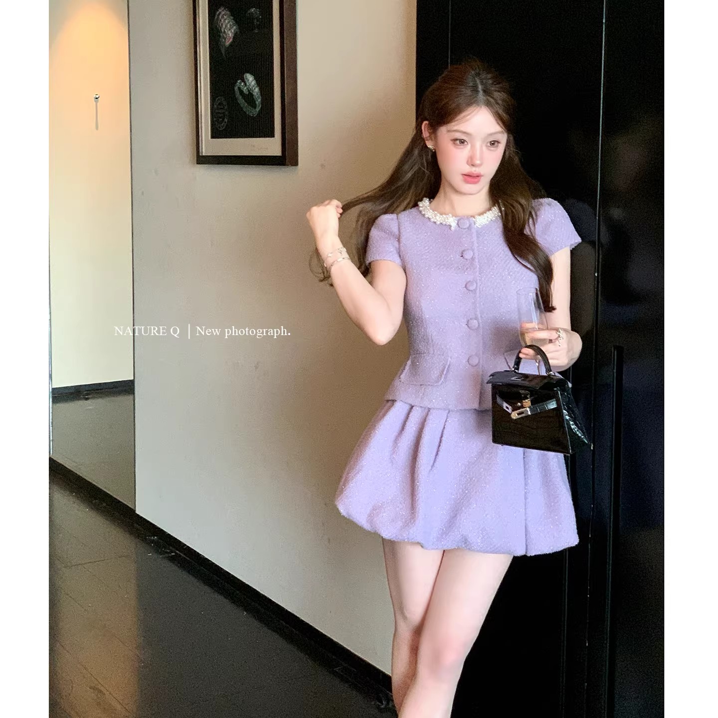 富家千金感小香风套装女春夏显瘦收腰外套花苞裙miu系穿搭