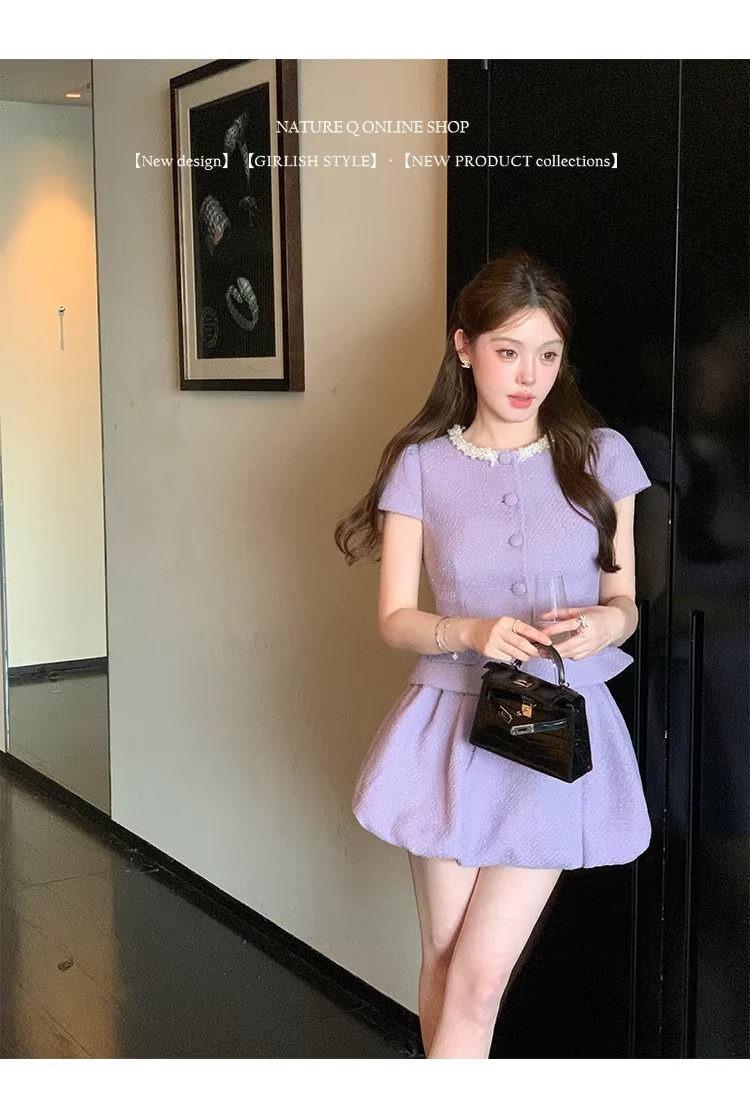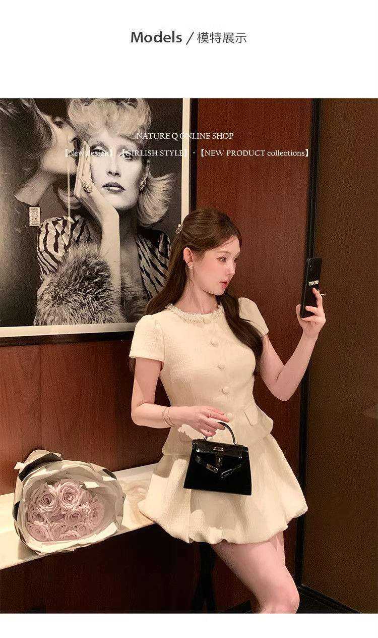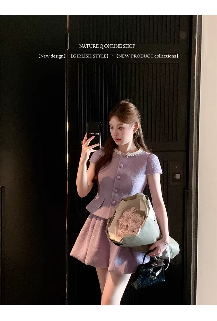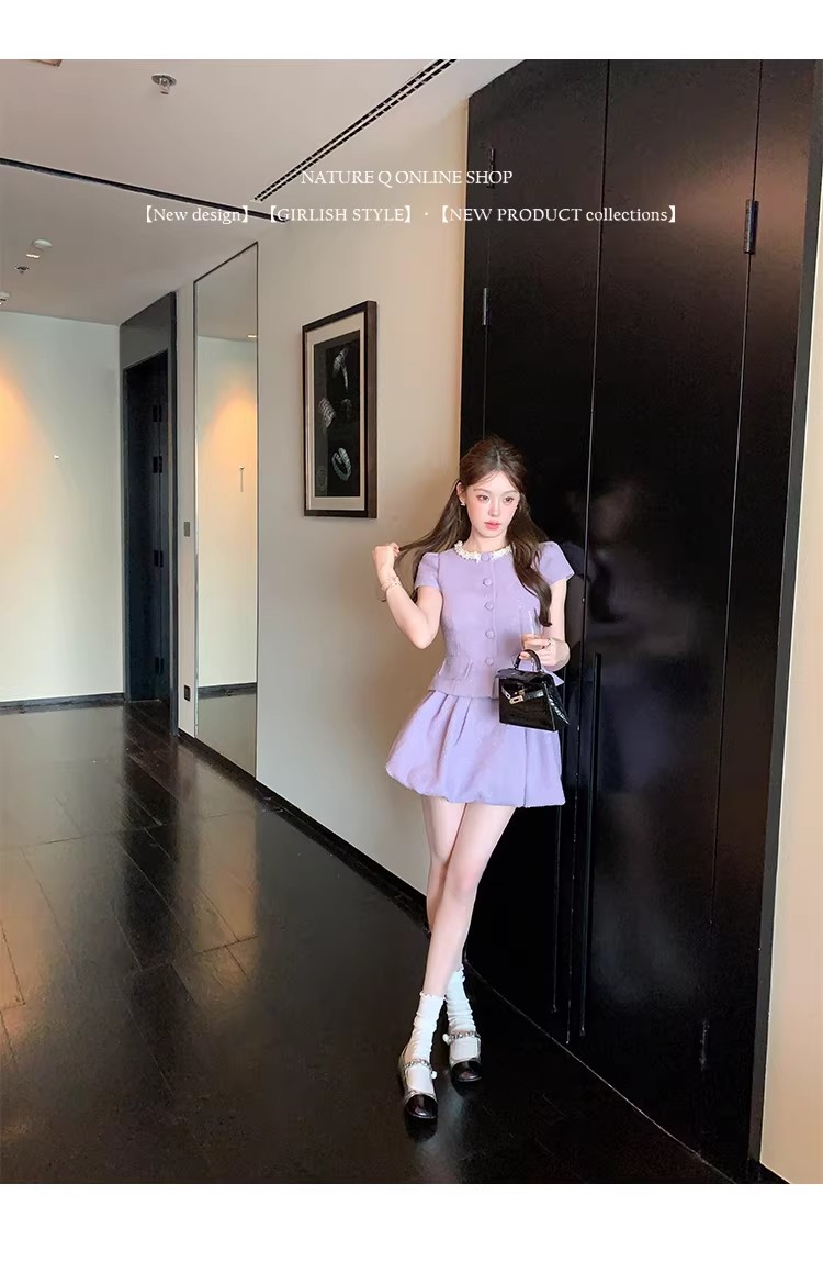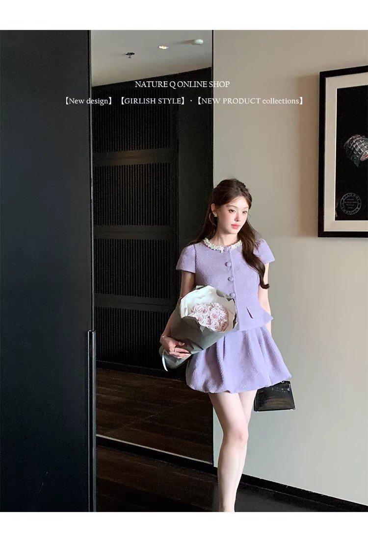 富家千金感小香风套装女春夏显瘦收腰外套花苞裙miu系穿搭