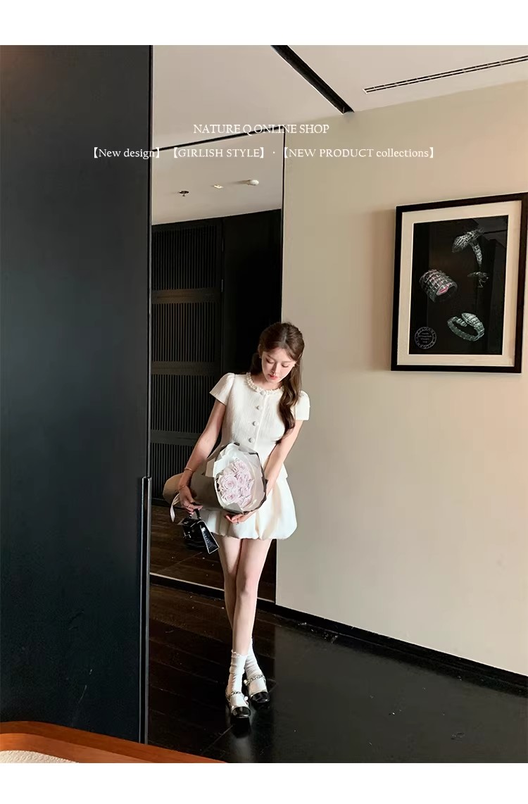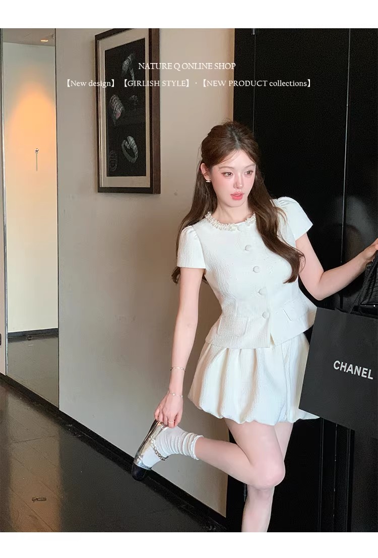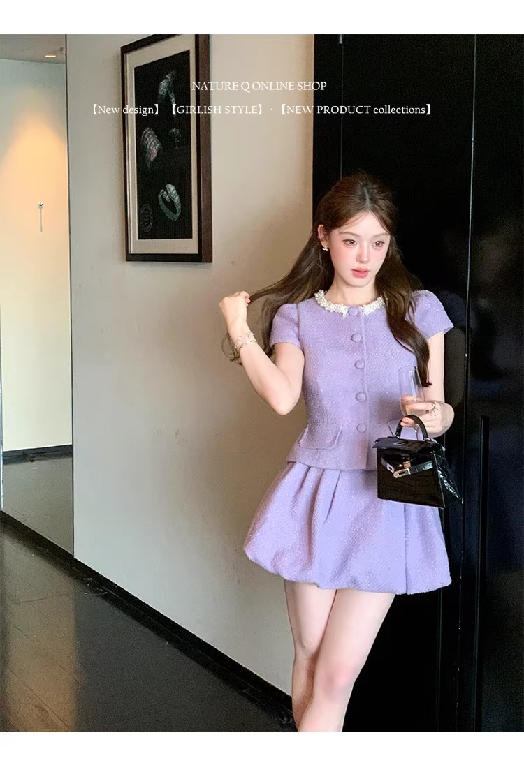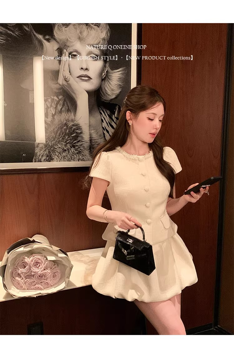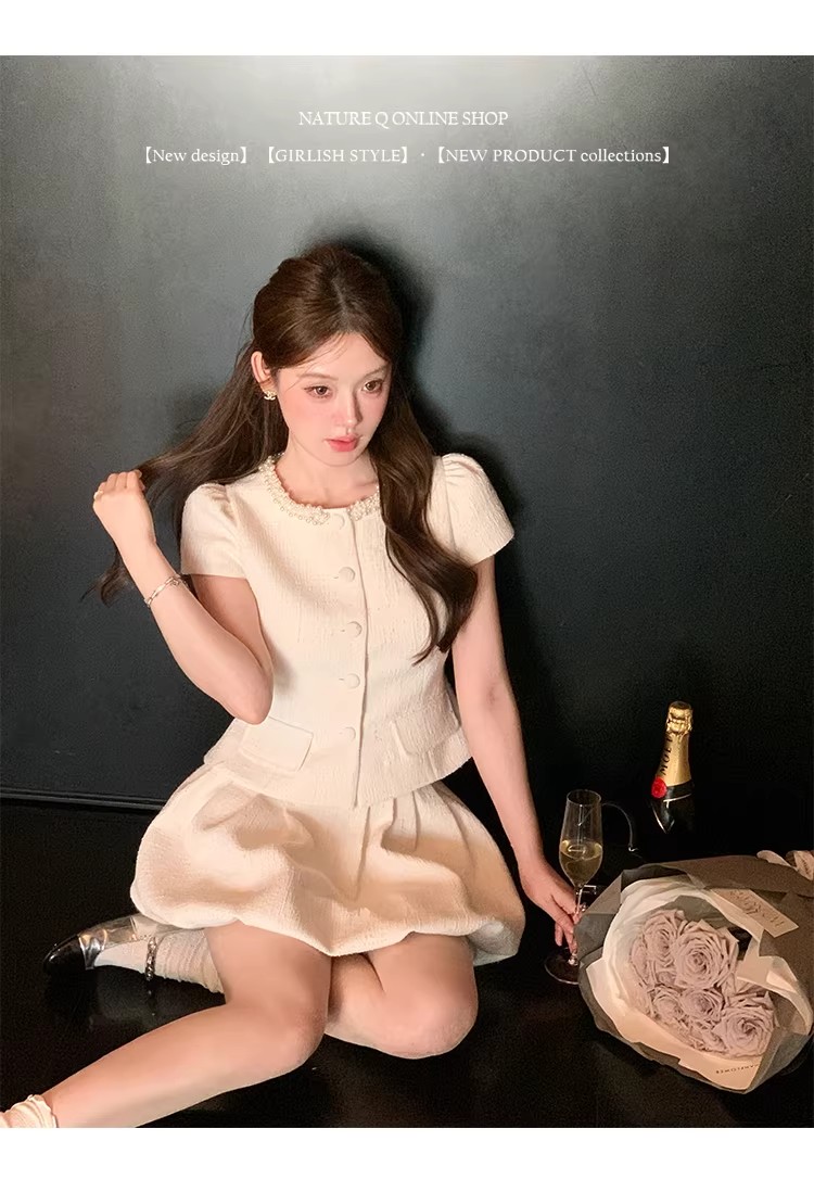 富家千金感小香风套装女春夏显瘦收腰外套花苞裙miu系穿搭