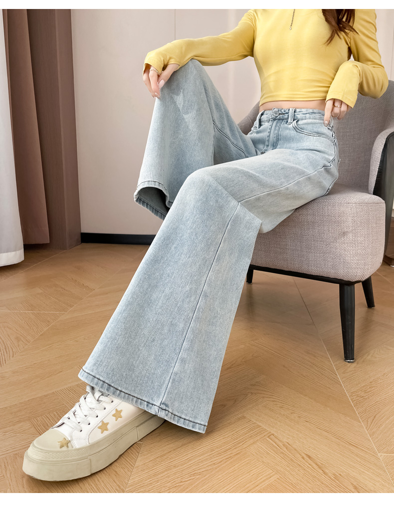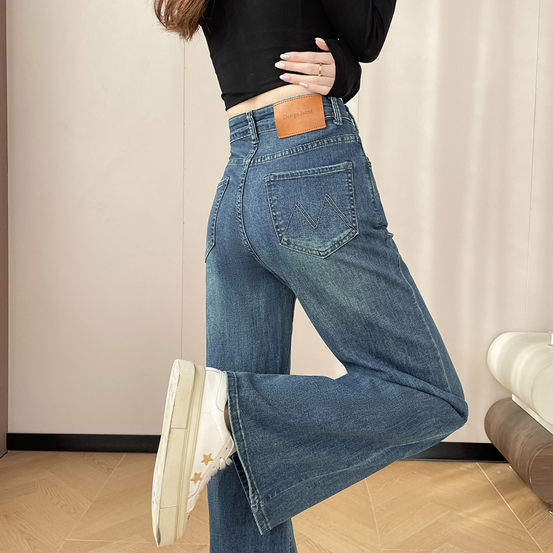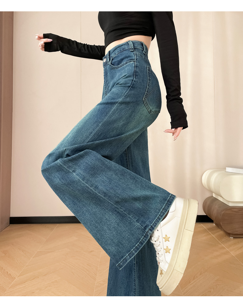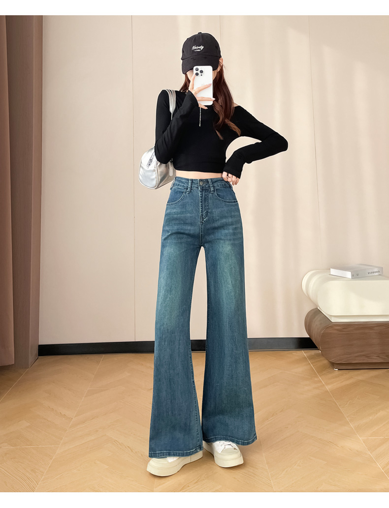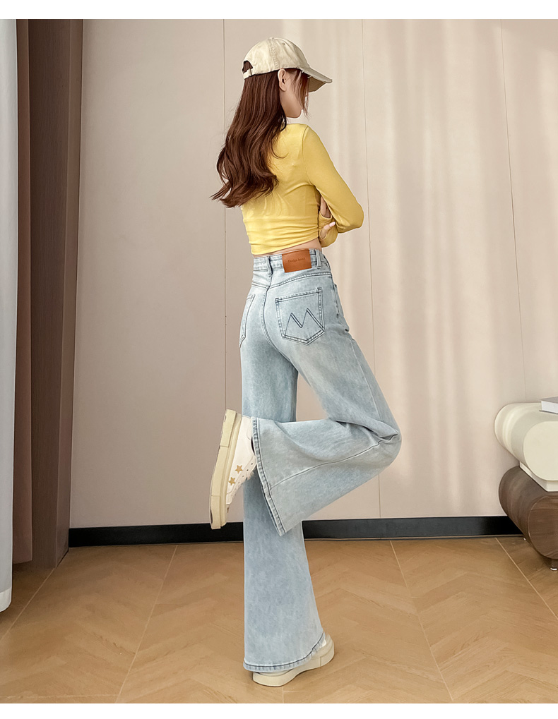 145cm小个子xxs穿搭不贴腿刺绣微喇牛仔裤女2026高腰弹力喇叭长裤