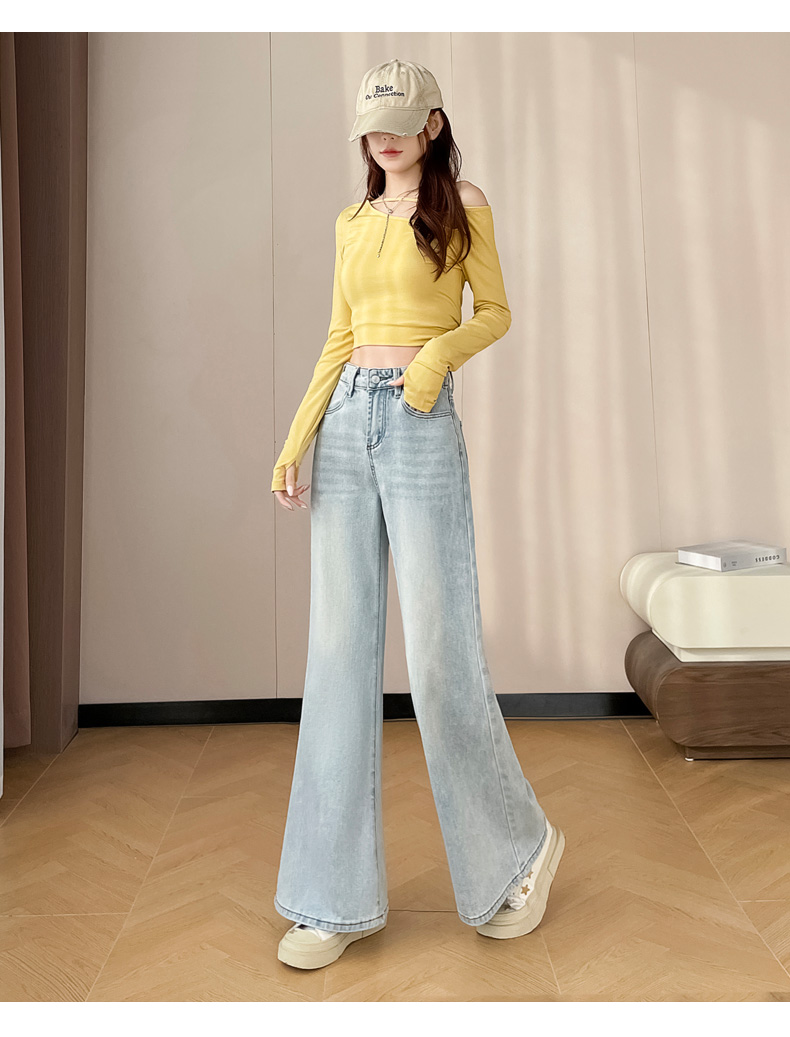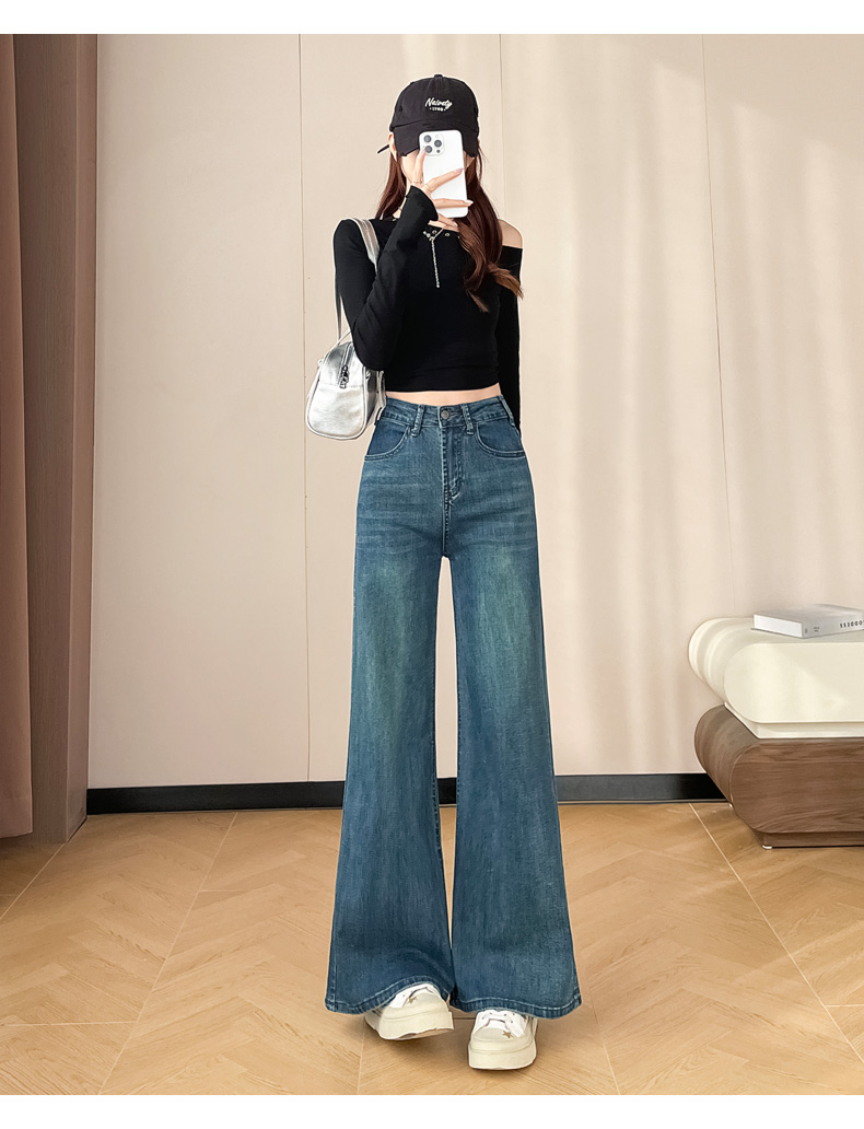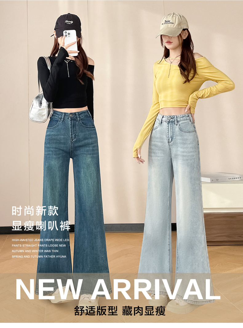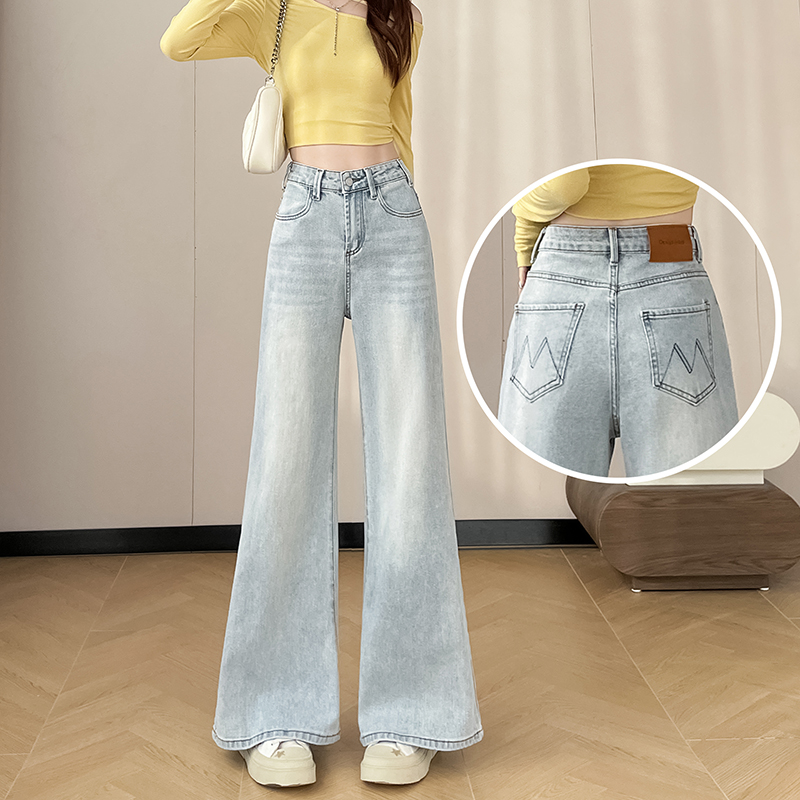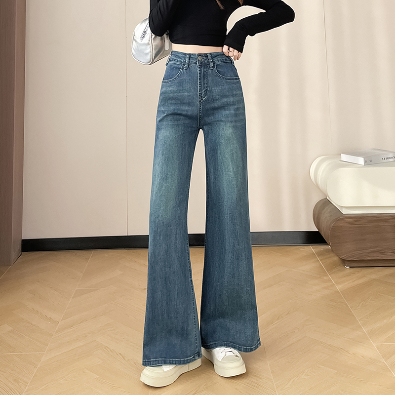 145cm小个子xxs穿搭不贴腿刺绣微喇牛仔裤女2026高腰弹力喇叭长裤
