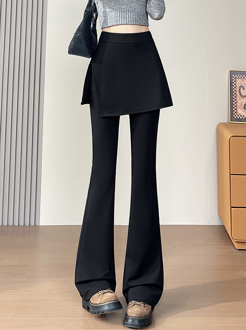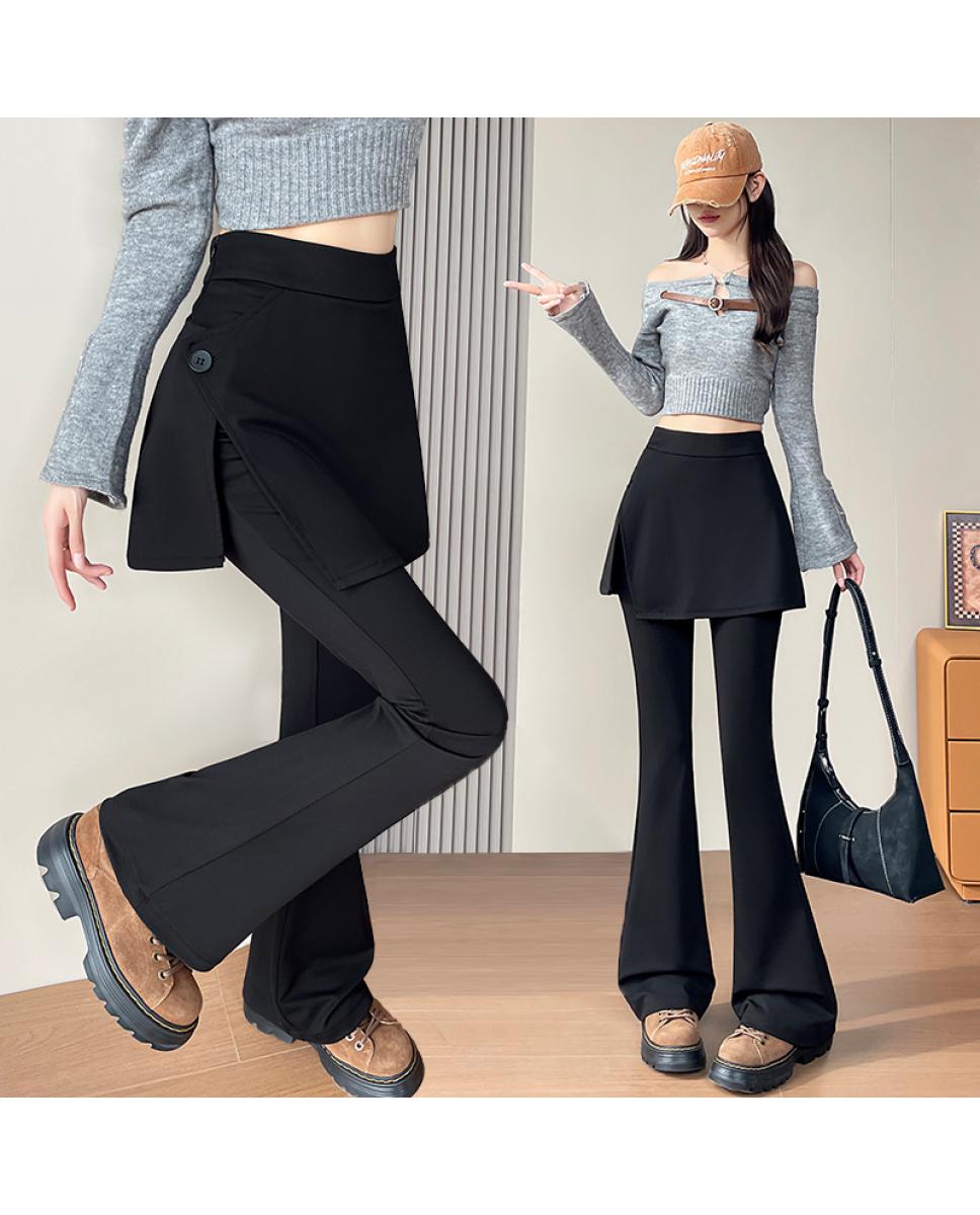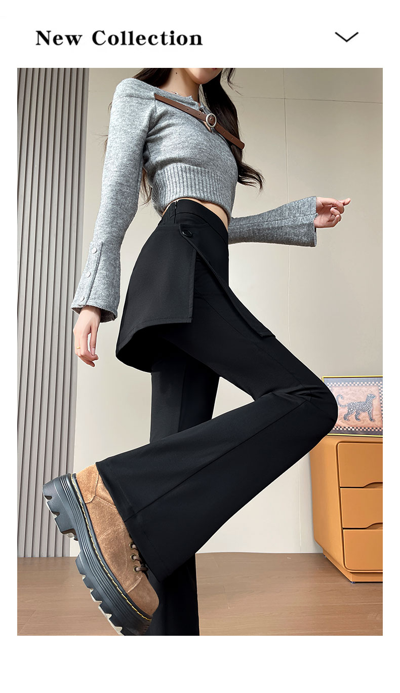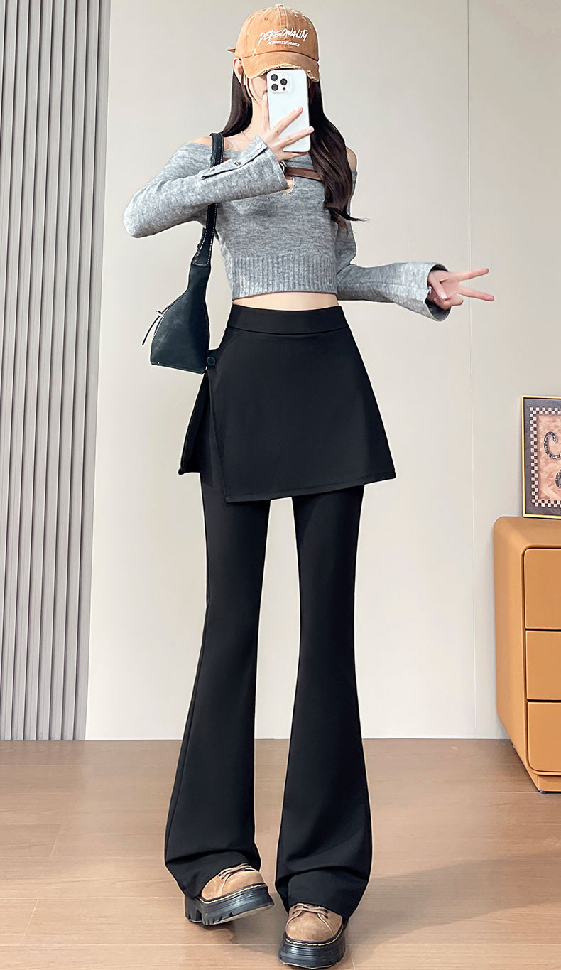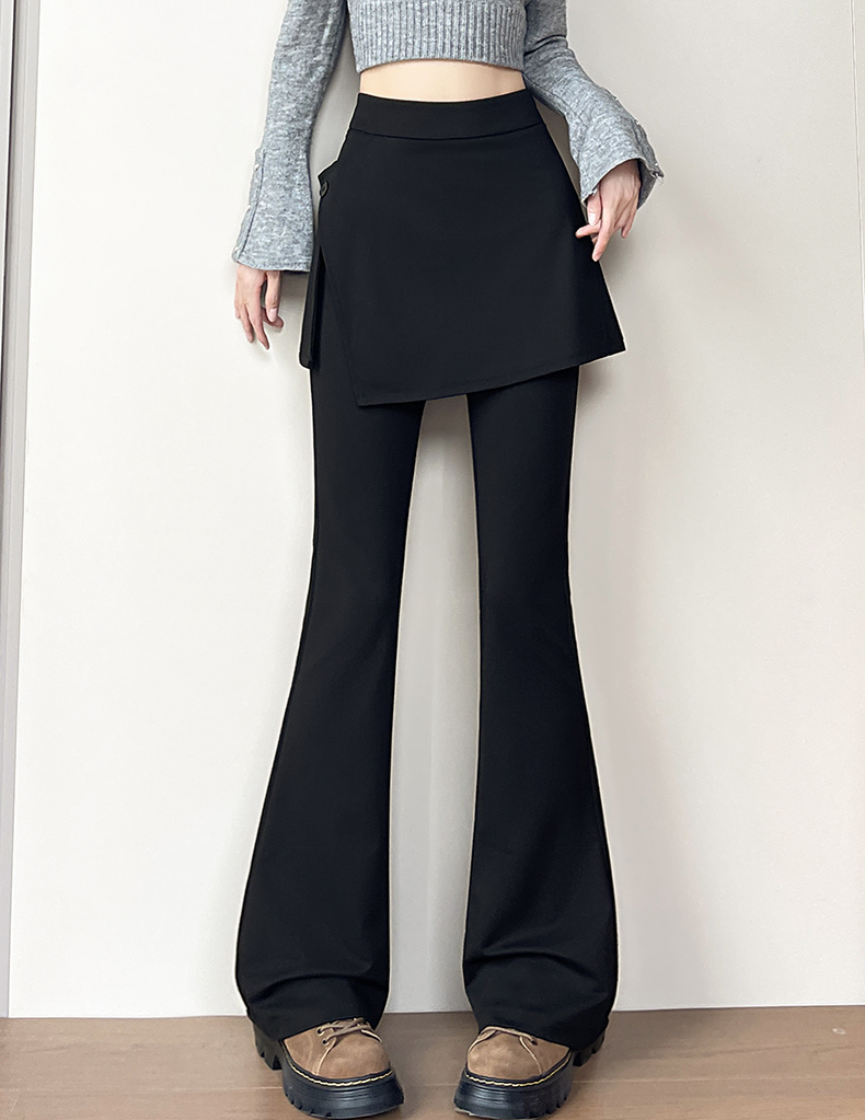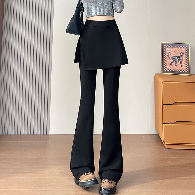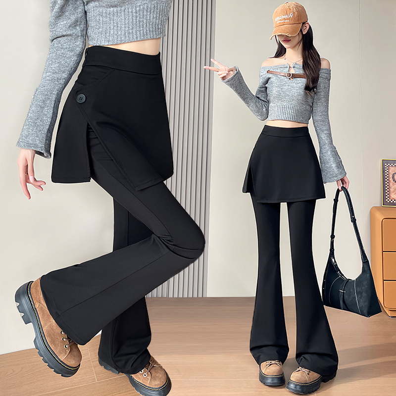 2026春假两件遮屁股显瘦屁帘裤子气质高腰休闲长裤侧开叉微喇裤