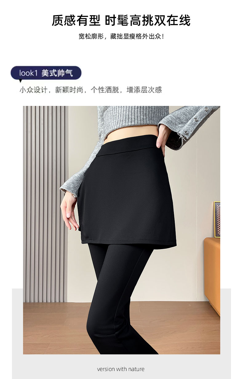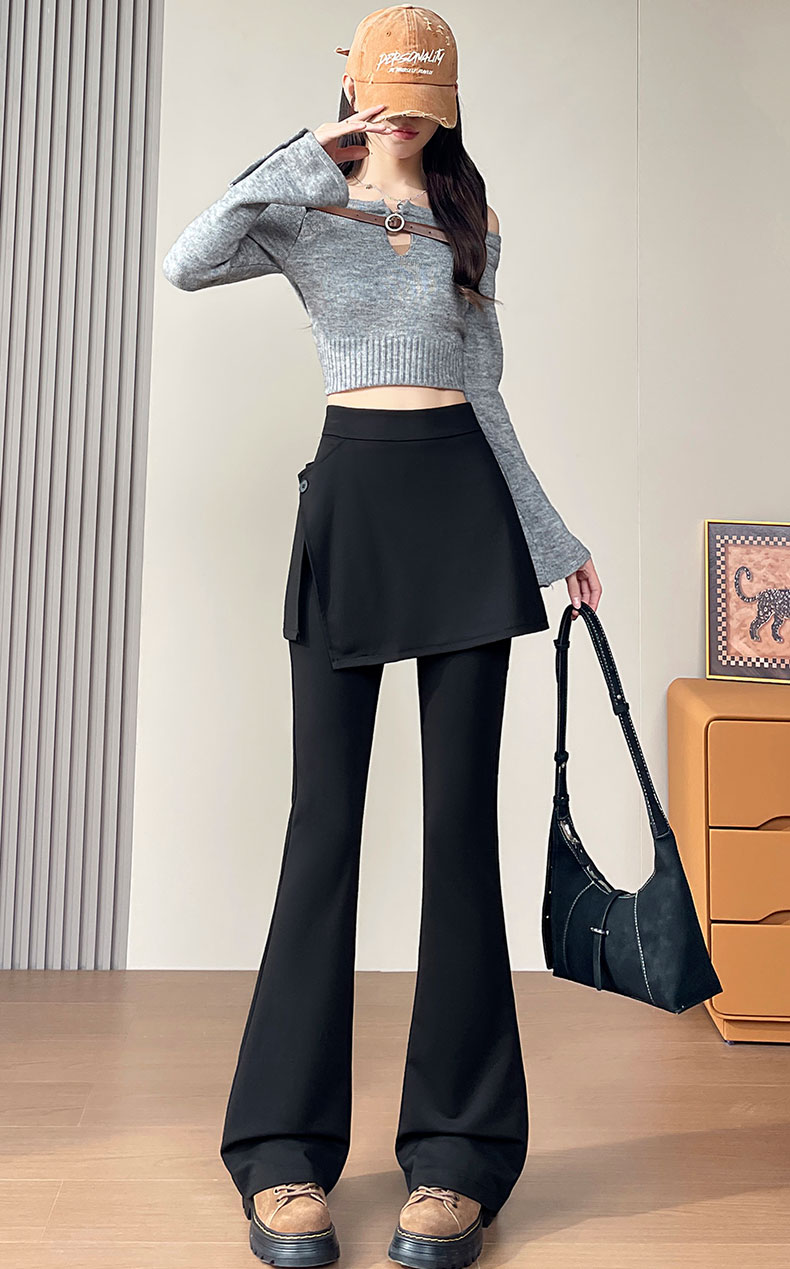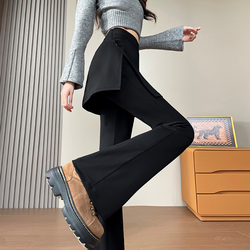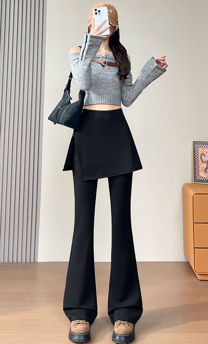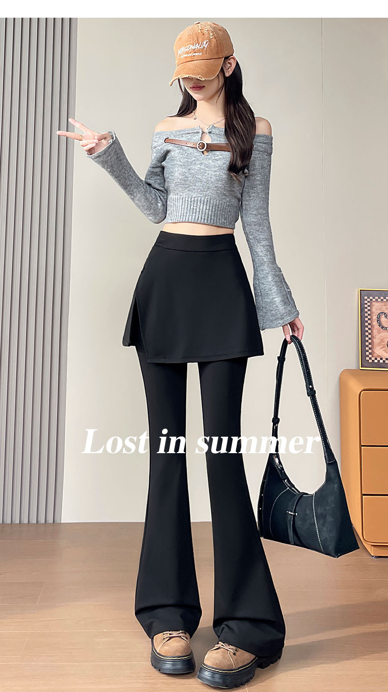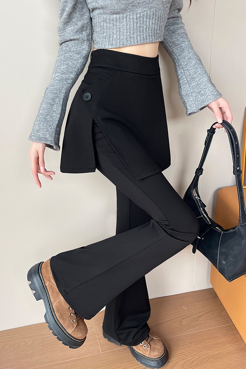 2026春假两件遮屁股显瘦屁帘裤子气质高腰休闲长裤侧开叉微喇裤