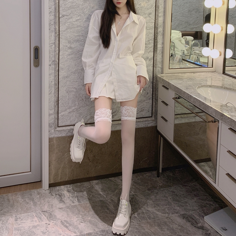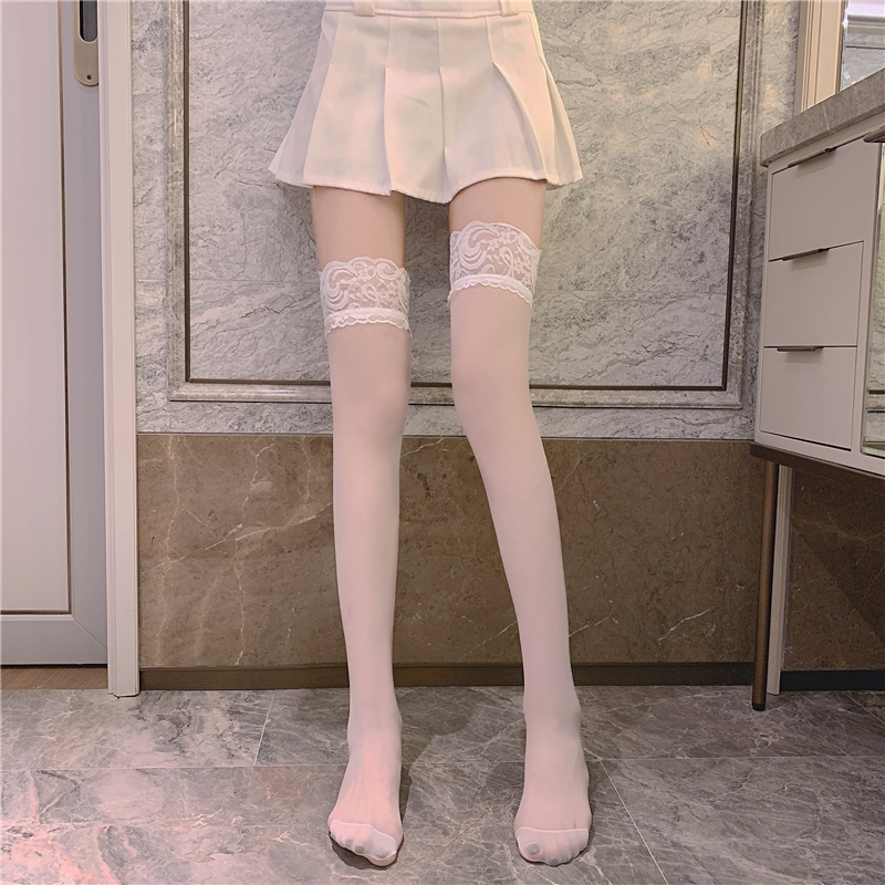 蕾丝边丝袜性感黑丝诱惑长腿袜硅胶防滑过膝长筒袜